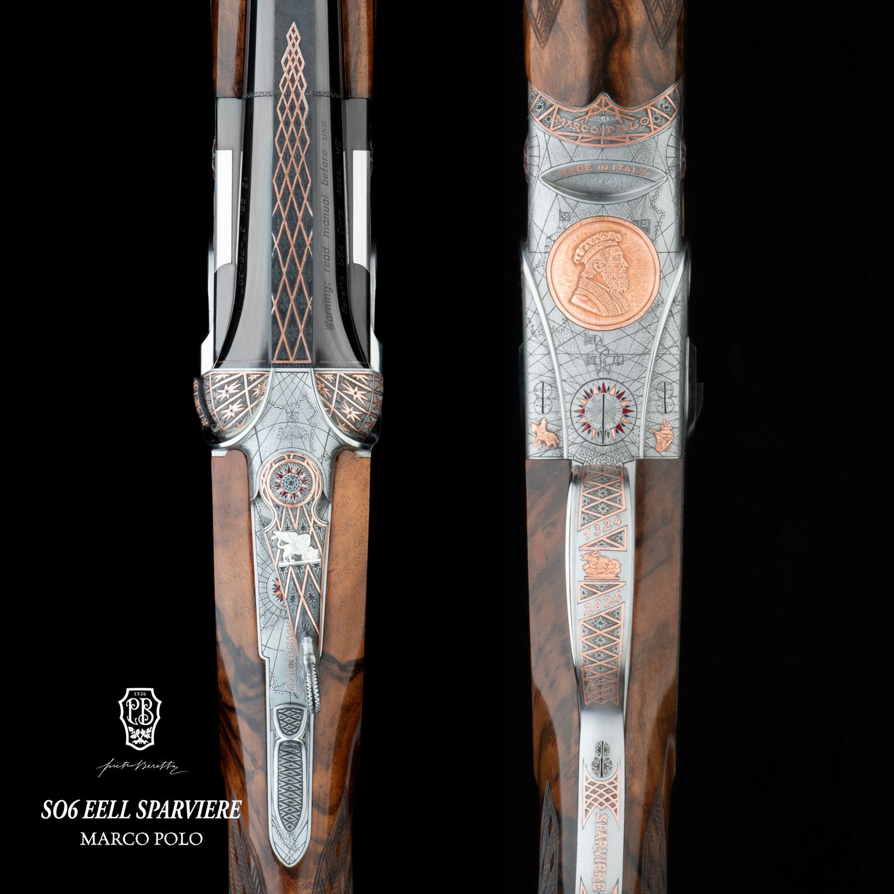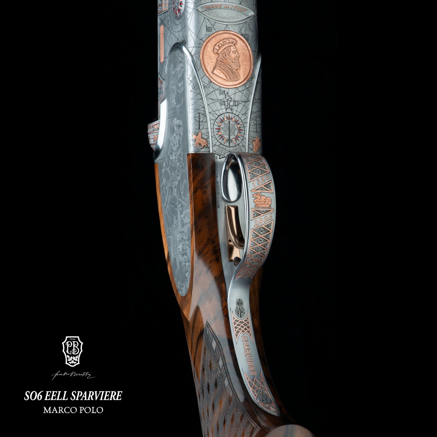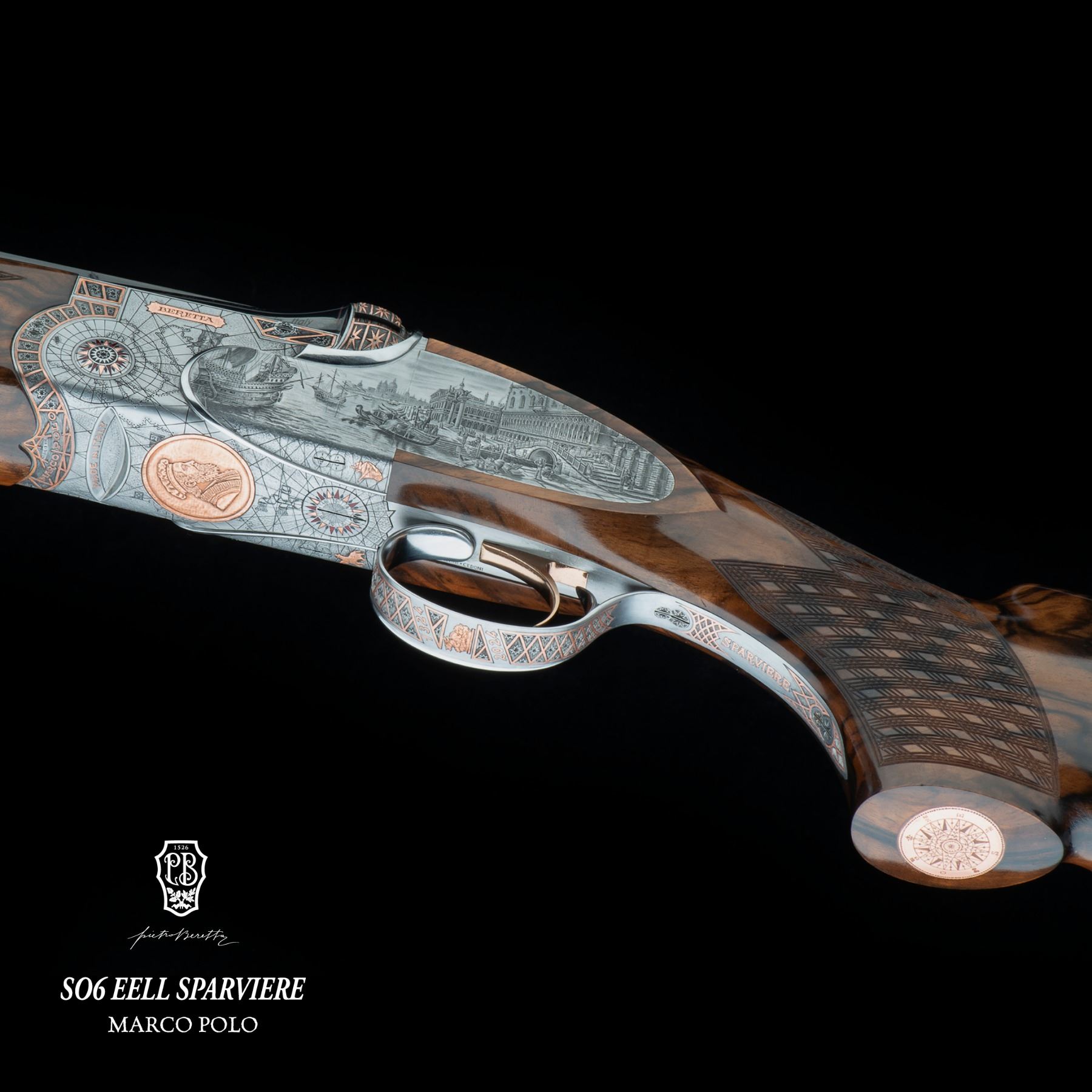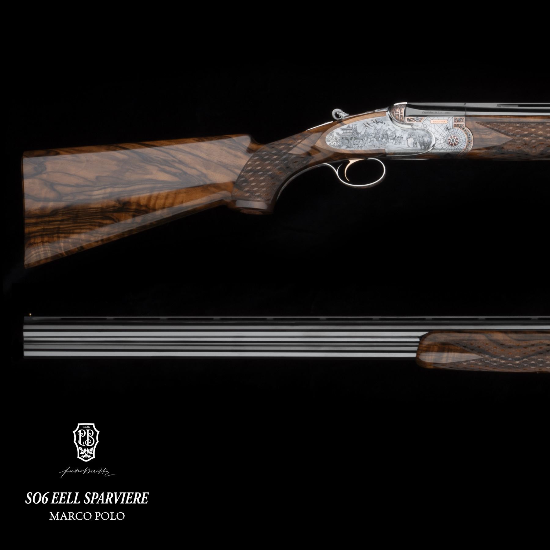 Beretta proudly dedicates its annual one-off to Marco Polo’s life and legacy with a bespoke creation: a one-of-a-kind firearm crafted on the legendary SO6 EELL Sparviere over & under 12-gauge platform.
