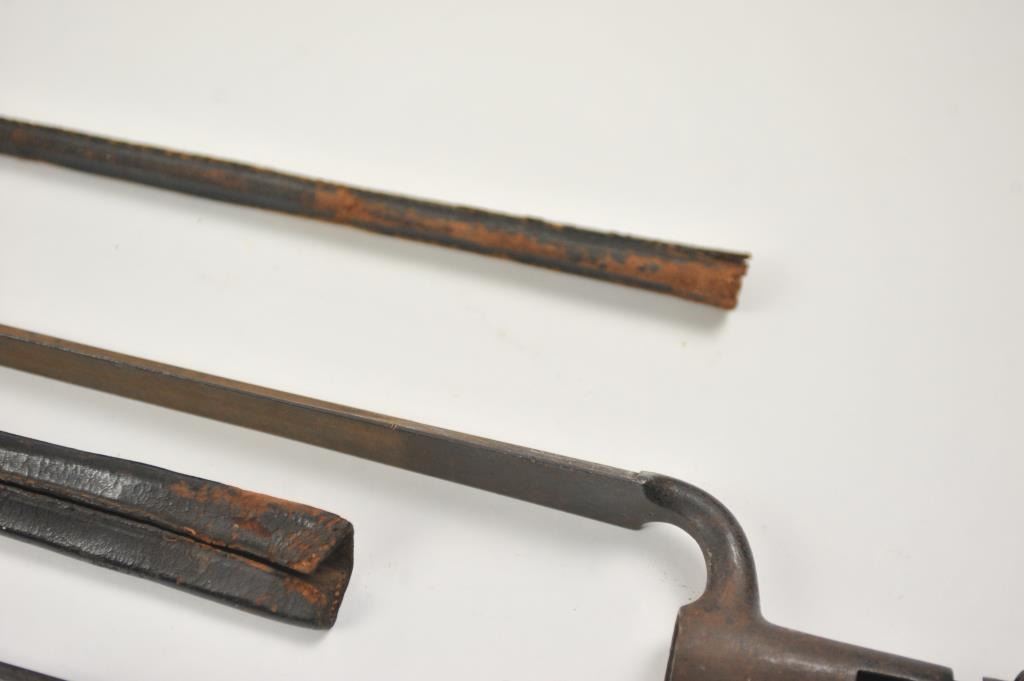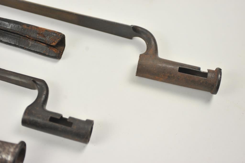 A collector’s lot of three early socket  bayonets. One or two likely for brown Bess  and one for an