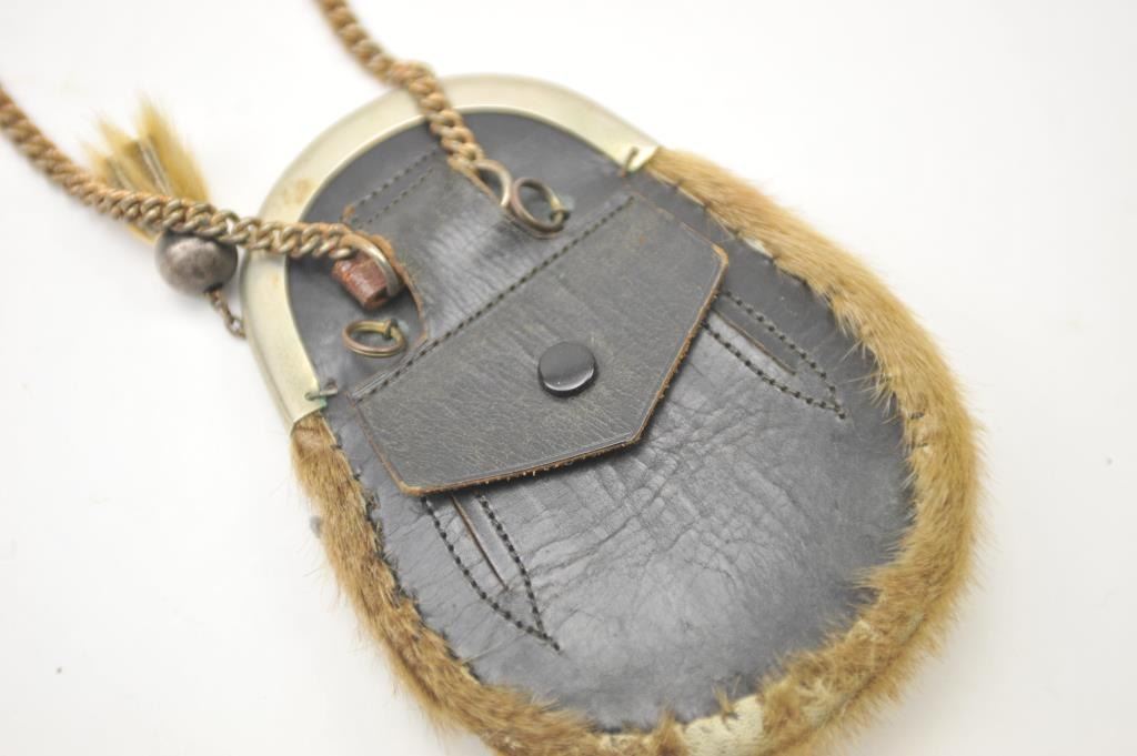 A small Scottish sporran of leather and deer fur. Silver stag on green Morocco. Silver tassels. Late 19th century. An attractive piece of Scottish regalia. Est.: $100-$200