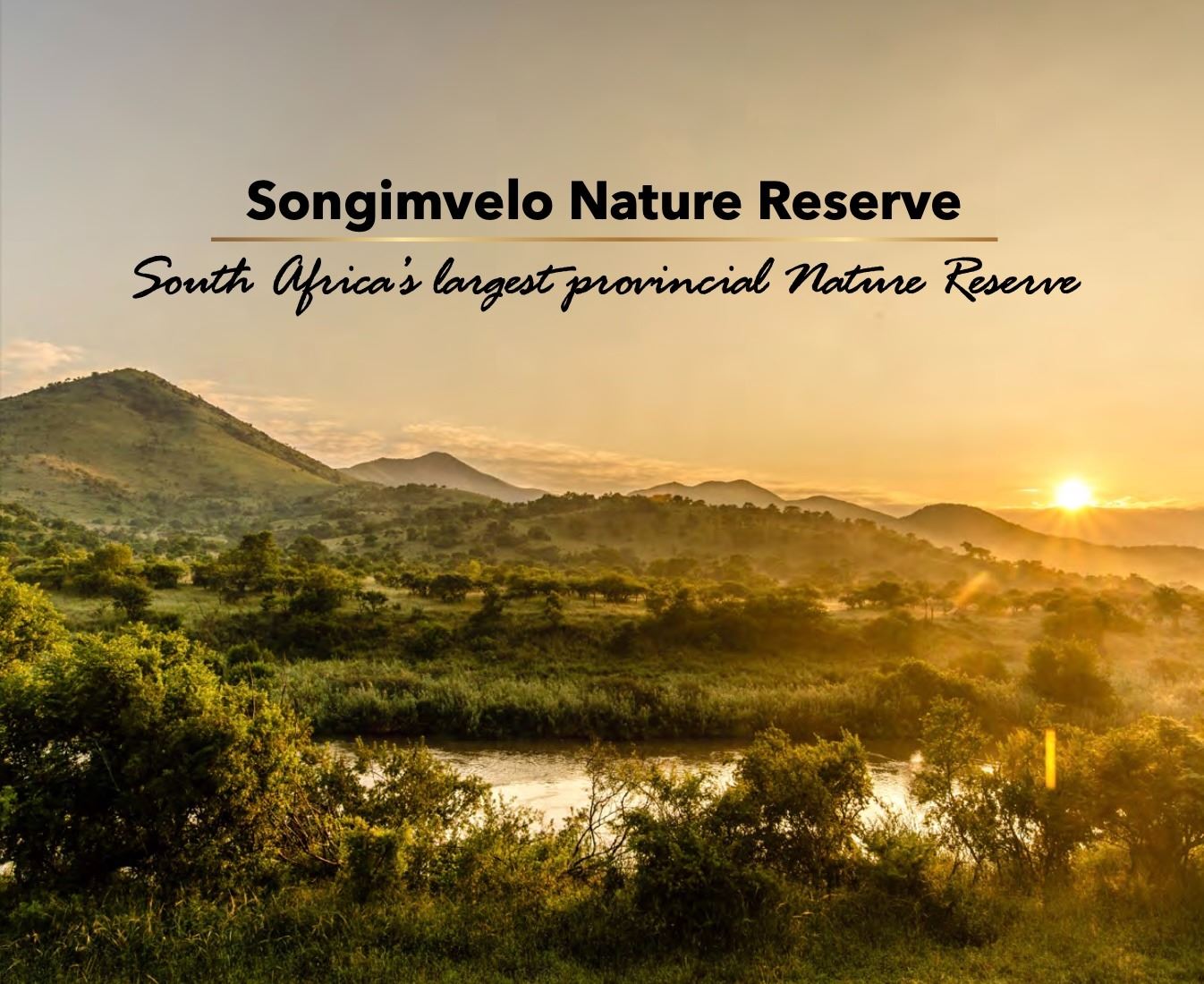 Songimvelo Nature Reserve is South Africa’s largest Provincial Nature Reserve and forms part of the Songimvelo-Malolotja Transfrontier Conservation area, a peace park located south of Barberton, in the south-eastern part of the Mpumalanga Province on the South African - Swaziland border. The incredible beauty of its range of mountains, which forms one of the oldest regions on earth, with incredible volcanic and sedimentary rocks, examples of which are exceeded only by those found in Greenland. Rolling hills, hidden valleys, wide open plains and forest ravines support an incredible