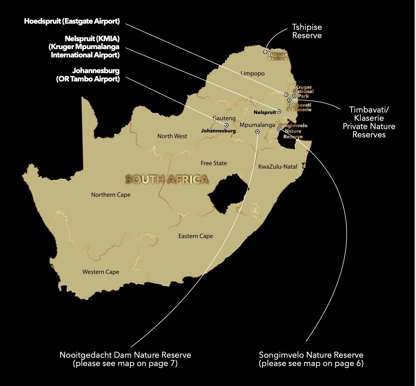 Additional species available on neighbouring private land: Bushbuck (Cape), Bushpig, Civet Cat, Crocodile, Large & Small spotted Genet, Nyala, Porcupine, Side-striped Jackal & White-tailed Mongoose.