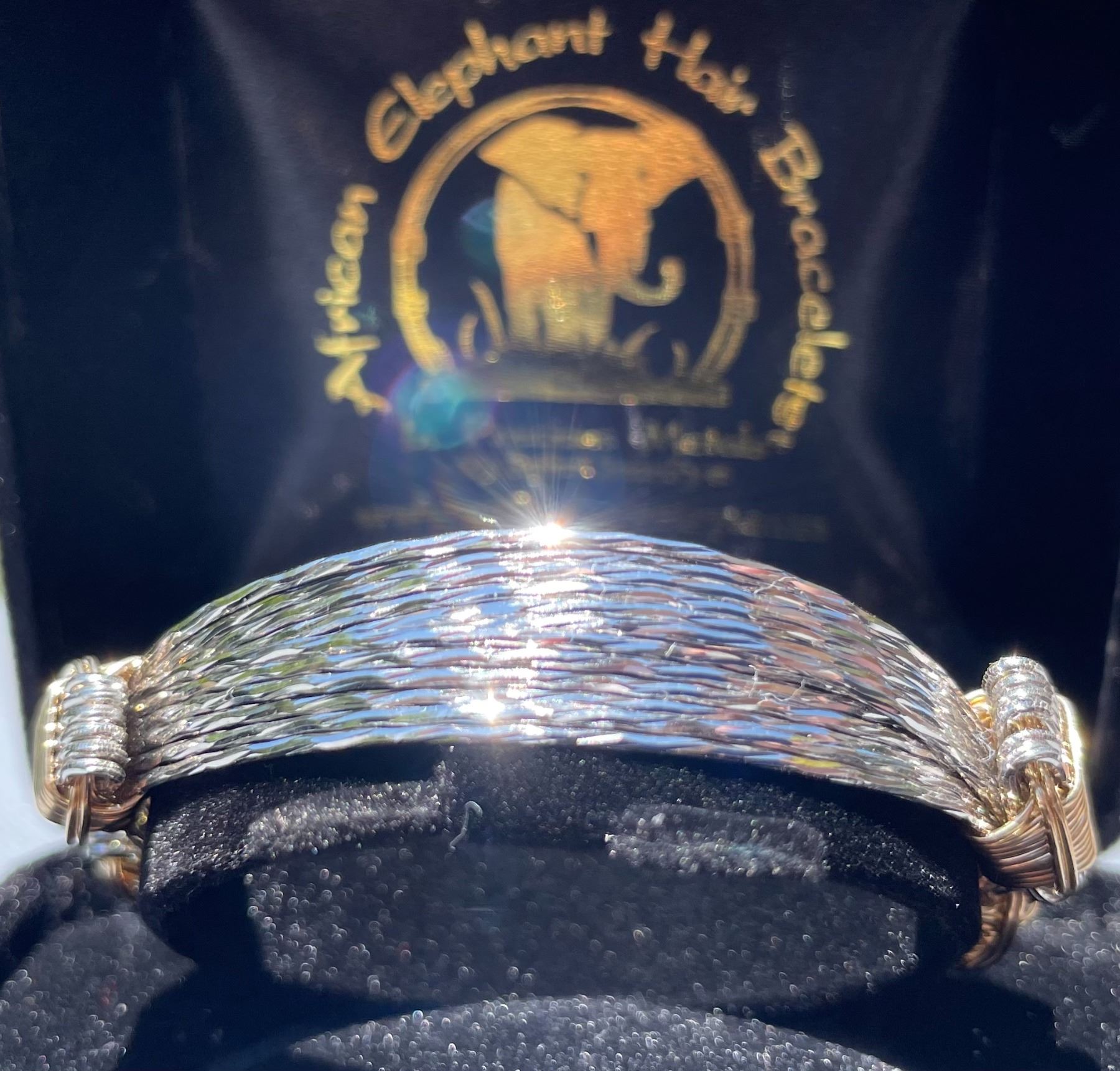 Crafted with utmost precision, this bracelet features strands of 16-gauge round diamond cut sterling silver wire. The intricate knots are adorned with contrasting 14k gold fill, adding a touch of elegance to the overall design. What sets this bracelet apart from our other products is its uniquely round wire that's diamond-cut to capture and reflect light from all angles. When you wear it, the bracelet sparkles like a thousand diamonds and when sunlight hits it, it creates an enchanting aura that's hard to ignore. Each piece of African Elephant Hair Bracelet - Safari Jewelry piece is handmade and hand signed - look for the maker's mark to ensure original quality. David Anderson, 805-685-5955, 805-452-5792, d.sb@verizon.net, www.SafariJewelry.Com, BOOTH #1524.
