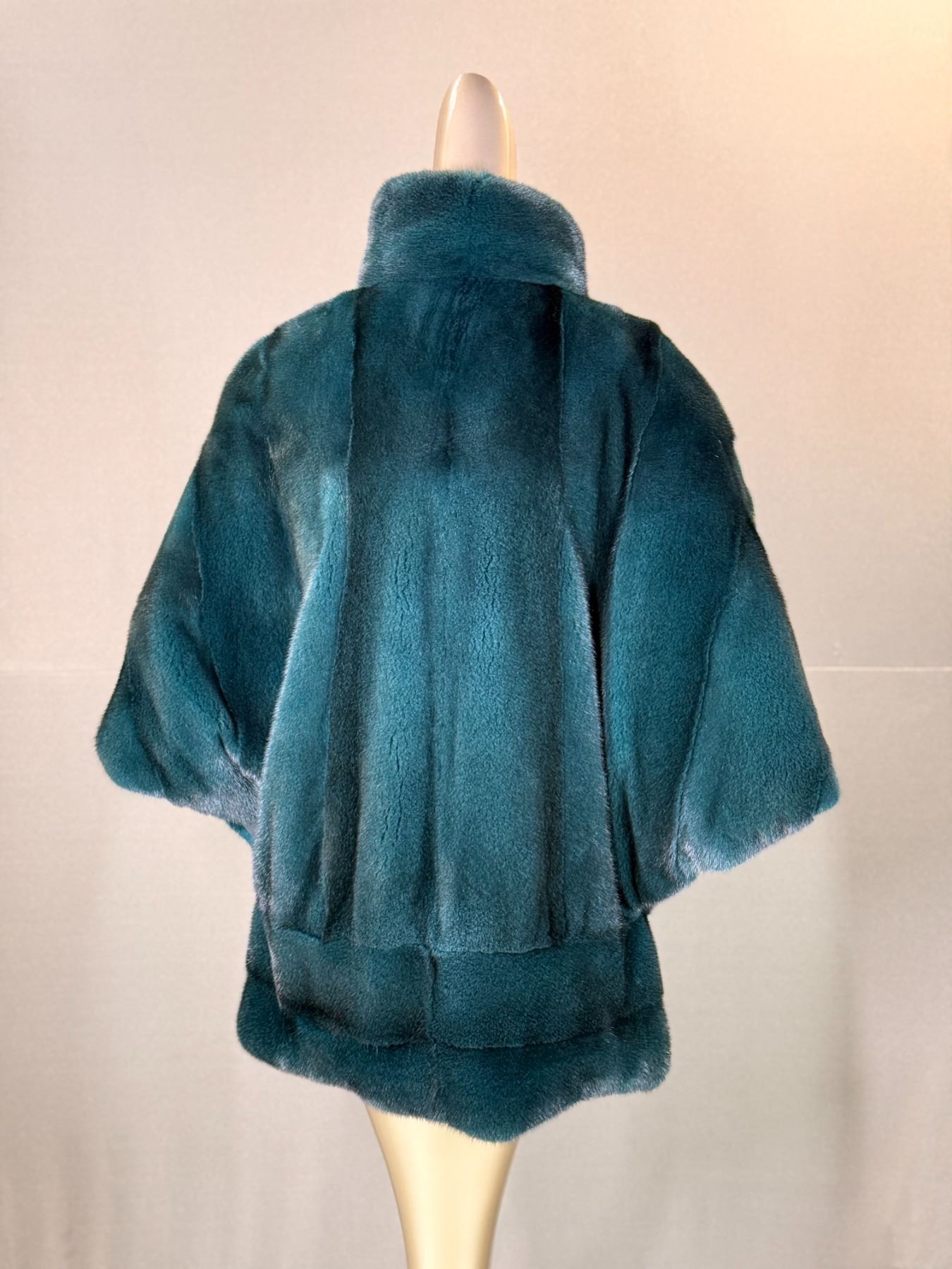 Alaska Fur Gallery presents a 30-inch long Mink cape, reversible to puffer, featuring dual pockets on both sides in a beautiful midnight green color. HSCF thanks Alaska Fur Gallery for this generous donation.