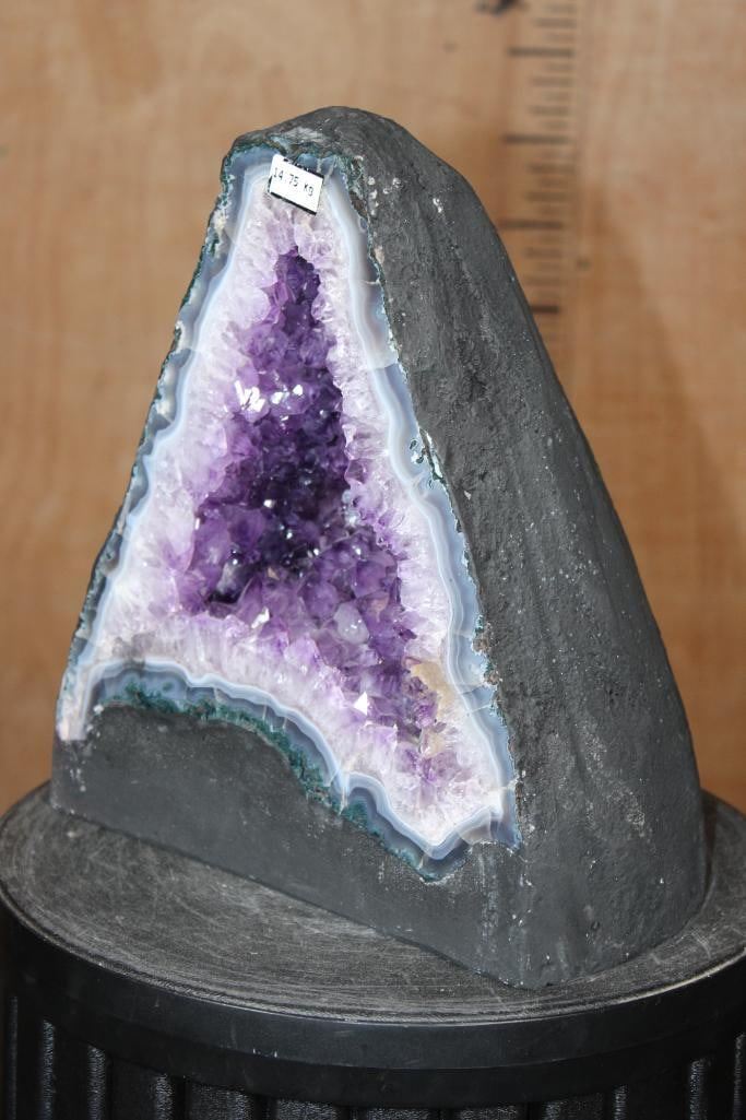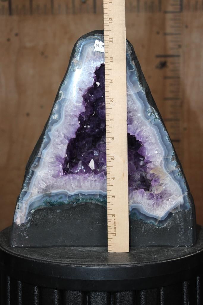 Incredible AMETHYST Geode Cathedral. It measures 11.75" Tall x 10.5" Wide x 7 7/8" Depth and the Total Weight is 31 lbs 15 oz. This Amethyst Geode Cathedral was mined in Brazil and is a truly impressive ornamental piece. ROCKS FOSSILS MINERALS CRYSTALS