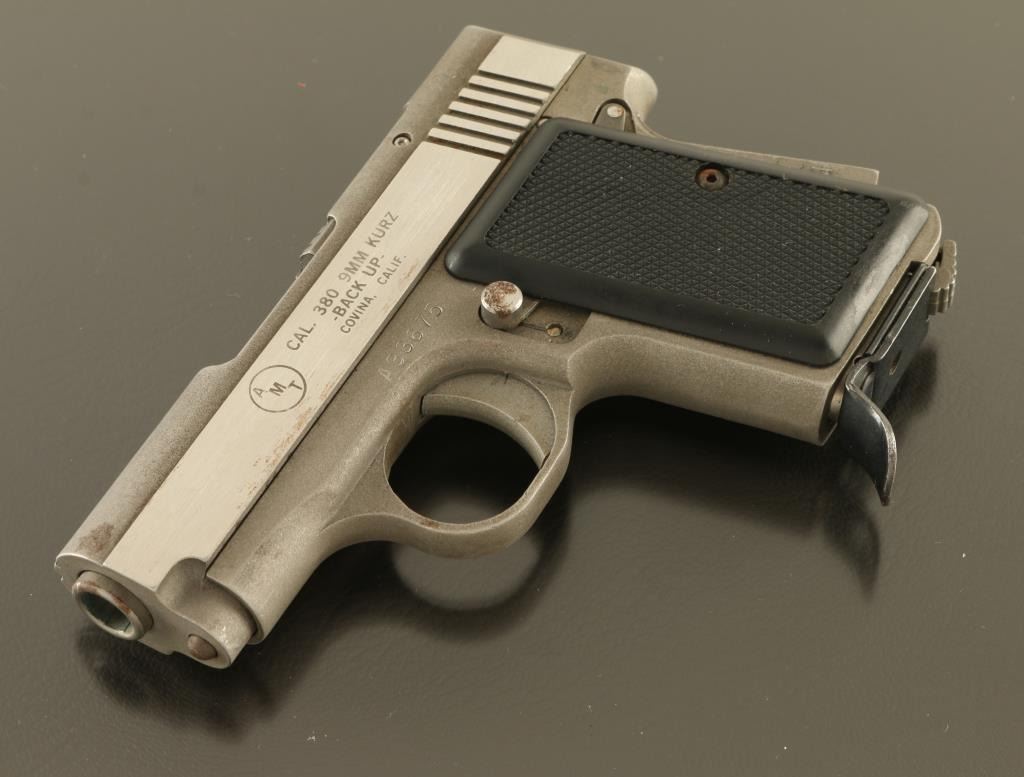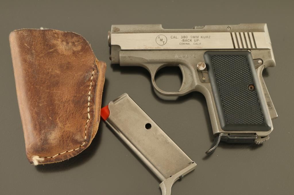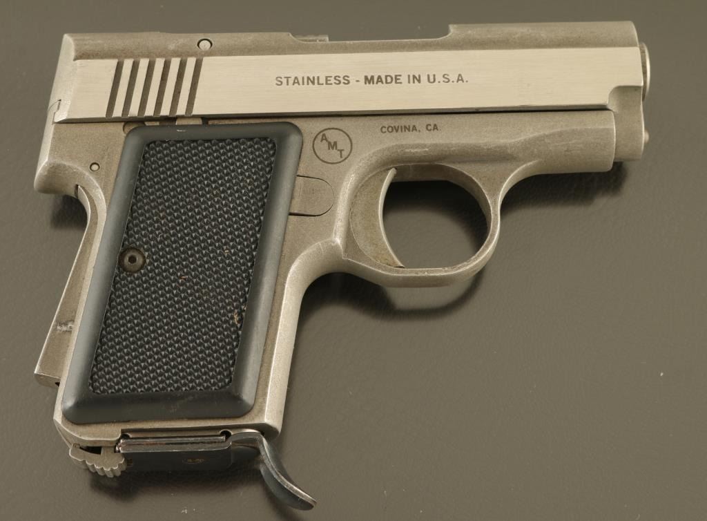 Semiautomatic pistol features stainless steel construction, checkered black plastic grips, heel magazine release, 2-5/8" barrel, fixed sights, single action trigger, manual safety, grip safety. Bore is very good, needs cleaning. External appearance is very good overall with scuffs and scratches mostly visible at matte finished areas of slide, and sides of grip safety from rubbing during operation. Includes spare magazine (2 total) and fair condition suede & leather "inside the waistband" holster. Condition is NRA Very Good *** Modern Firearm ***