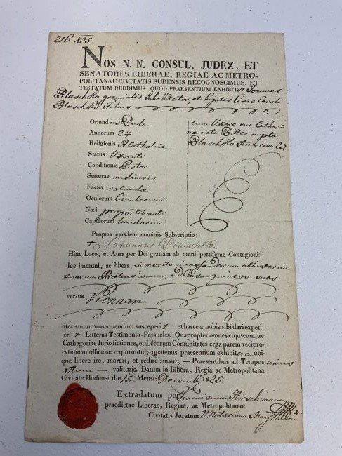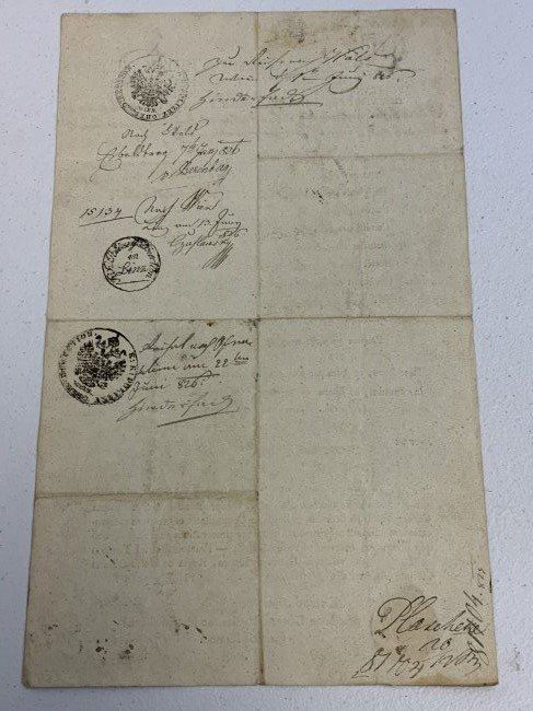 ANTIQUE AUSTRIAN EMPIRE OFFICIAL DOCUMENT SIGNED WITH WAX SEAL 1825 DATED . DOCUMENT IN LATIN . LARGE SIZE 14.5 X 8 . RARE . INK STAMPS AND SIGNATURES ON THE OPPOSITE SIDE . SUITABLE FOR FRAMING.