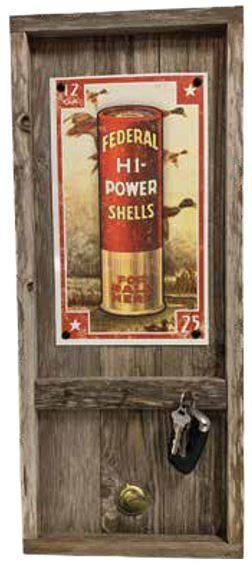 Made in USA from recycled Texas. Barnwood, it features a Federal vintage sign, and horseshoe nails to hold the keyrings. It measures 10” X 24” size and is complete with two sawtooth hangers and a DU medallion attached.
