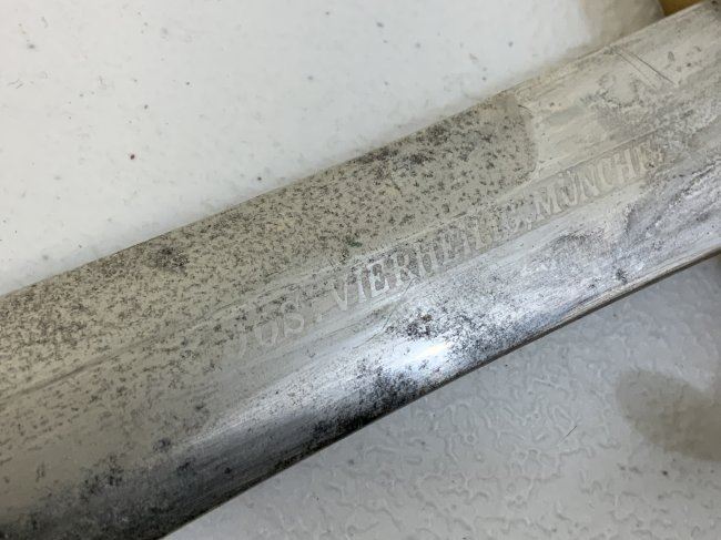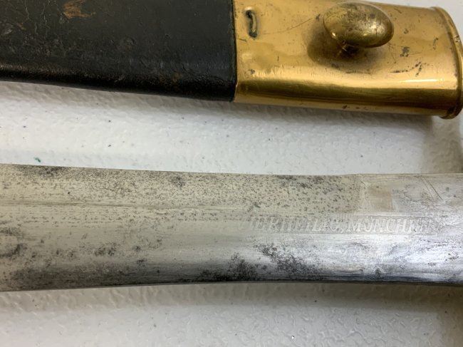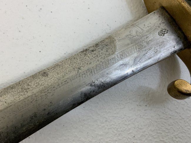 ANTIQUE GERMAN BAVARIAN POLICE WATCHMANS SHORT SWORD . LATE 19TH / EARLY 20TH CENTURY. THE BLADE IS MARKED WITH KNIGHT'S HEAD LOGO OF THE WKC SOLINGEN COMPANY. ALSO MARKED JOS. VIERHEILIG, MUNCHEN ON THE BLADE. GREAT CONDITION FOR ITS AGE.