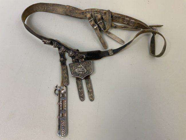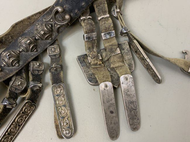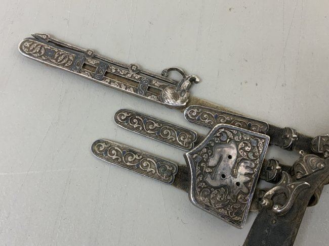 ANTIQUE IMPERIAL RUSSIAN COSSACK CAUCASIAN 84 SILVER NIELLO DECORATED BELT. SHOWS ITS AGE BUT STILL IN VERY GOOD CONDITION .GREAT FITTINGS. ALL STAMPED 84 SILVER . ORIGINAL LEATHER . LATE 19th CENTURY . GREAT AND HIGHLY DESIRABLE EXAMPLE
