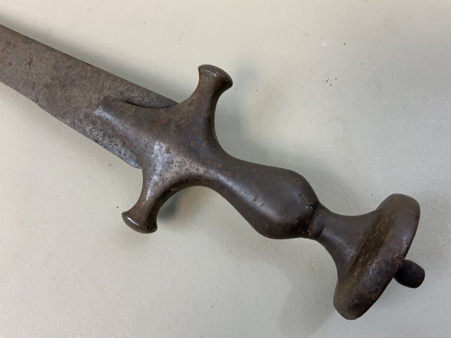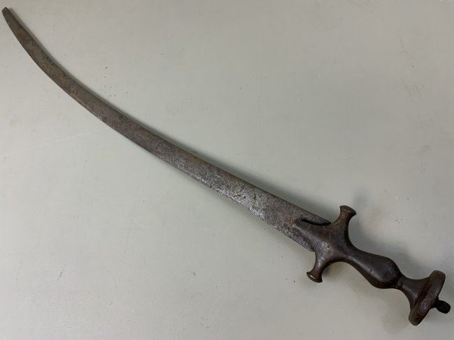 ANTIQUE ISLAMIC INDIAN PERSIAN TULWAR SWORD . ANTIQUE METAL SHOWS A GREAT AGE . TIP OF THE BLADE IS BLUNT.NICE EXAMPLE .