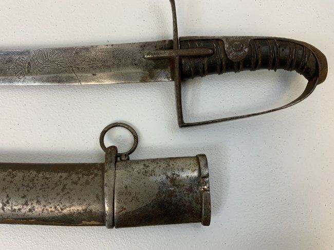 ANTIQUE NAPOLEONIC WARS RUSSIAN OR AUSTRIAN HUSSAR MASSIVE SWORD . VERY RARE AND UNIQUE SWORD. BLUCHER TYPE. POSSIBLE GERMAN MADE. HEAVY WIDE BLADE WITH IMPERIAL DOUBLE HEADED EAGLE ENGRAVED ON BOTH SIDE . SOME INTERESTING MARKINGS ON SPINE. HEAVY STEEL SCABBARD . ALL STEEL . SOME CORROSION AND RUST AT THE TIP AND ONE NICK. LATE 18TH - EARLY 19TH CENTURY SWORD . 41" LONG WITH 33 1/2 " BLADE .