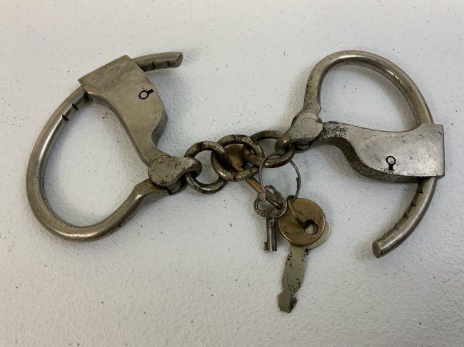 ANTIQUE PAIR OF HANDCUFFS WITH KEYS