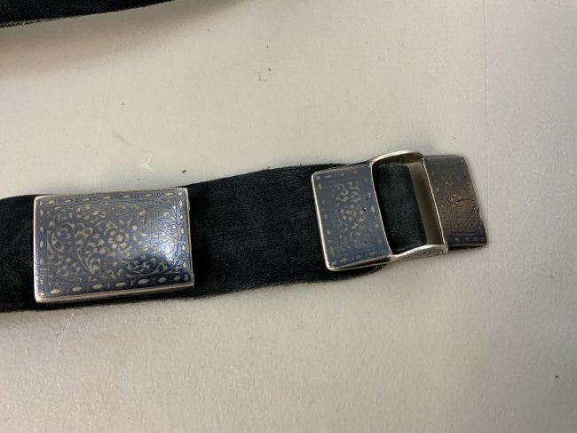 ANTIQUE RUSSIAN COSSACK BELT CAUCASIAN SILVER NIELLO . BEAUTIFUL SILVER FITTINGS DATED 1913 .