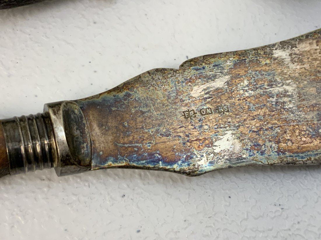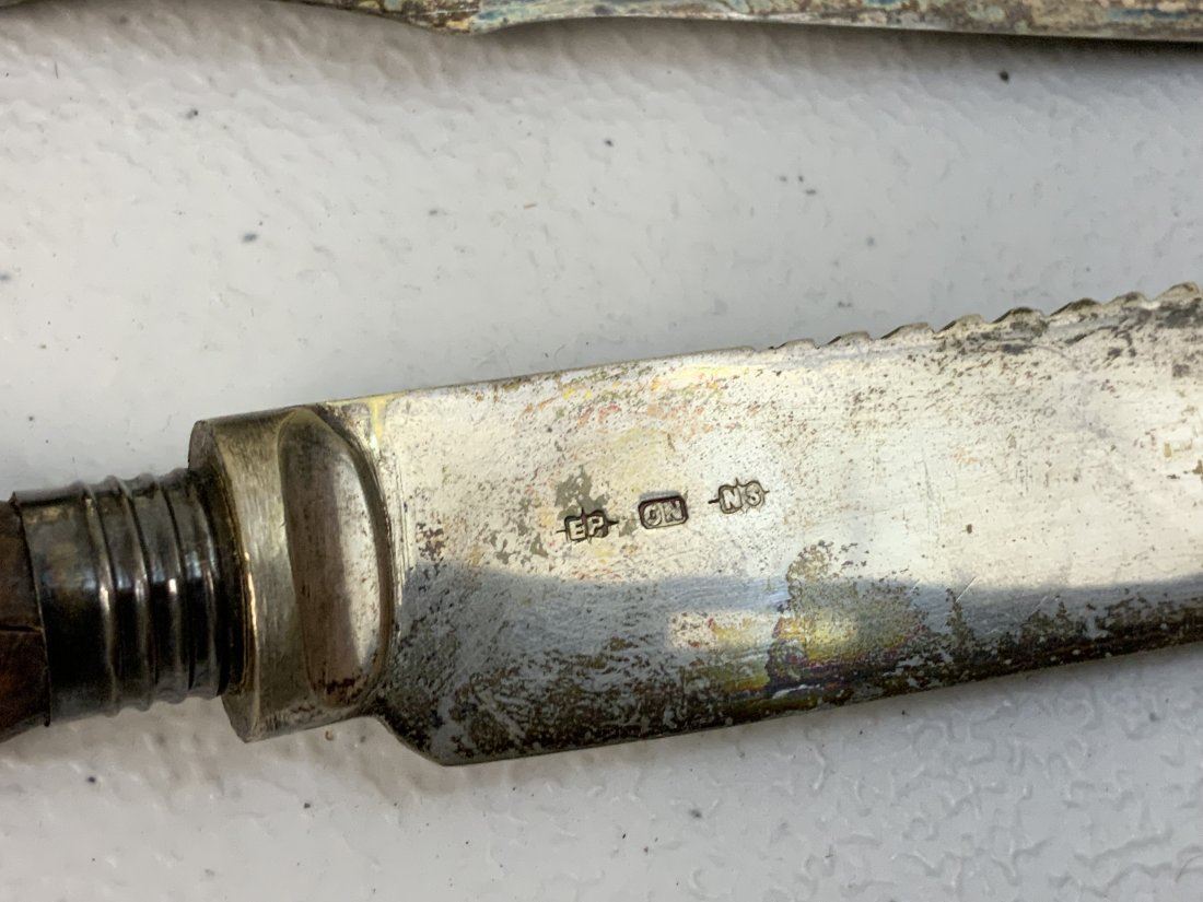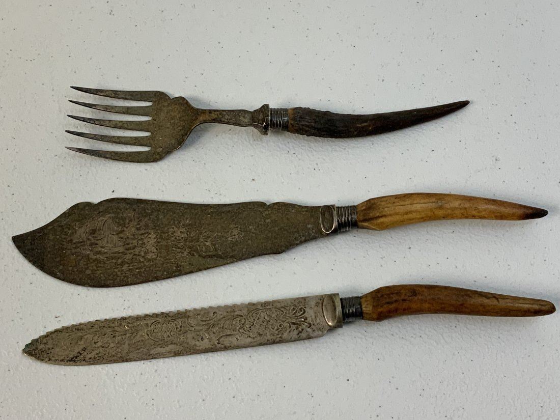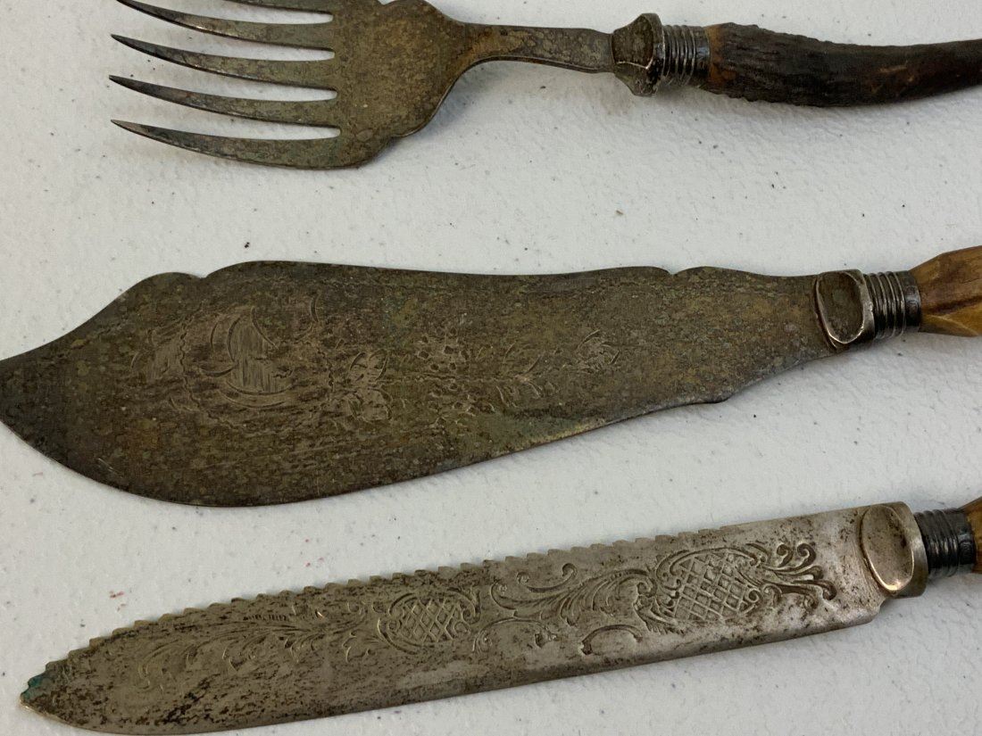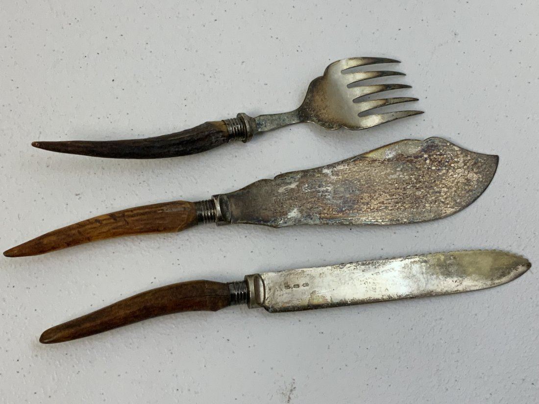 ANTIQUE SILVER AND STAG HORN GRIPS SERVING UTENSILS . GREAT CONDITION. NICELY HALLMARKED .