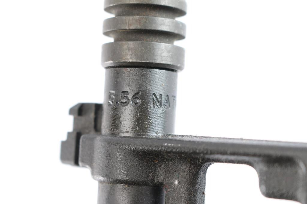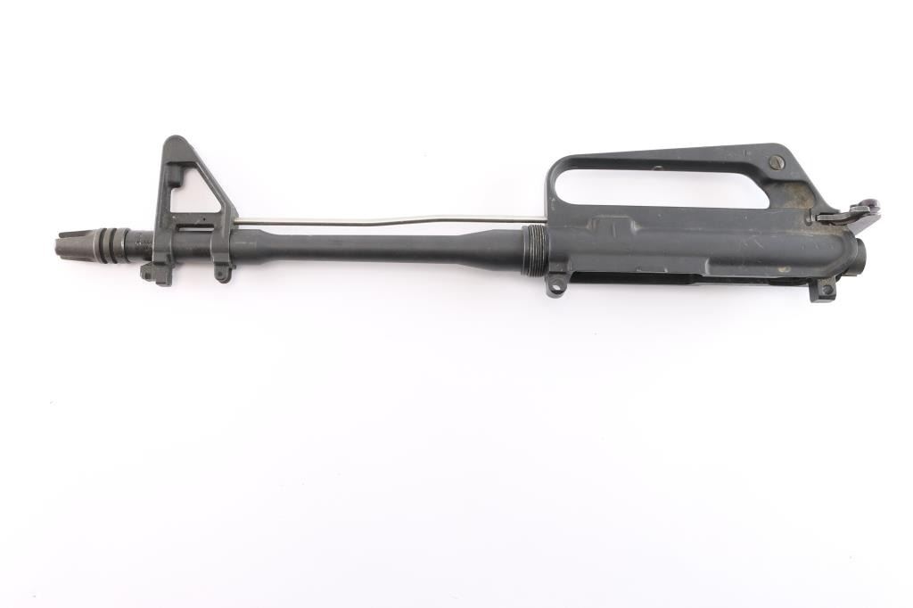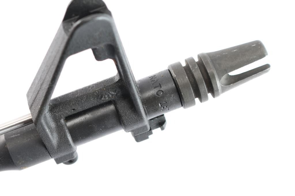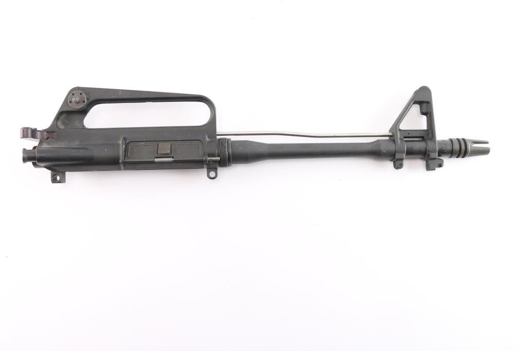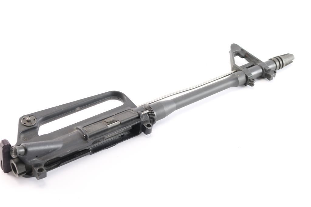 Complete upper except for the handguards and front sight post. 11" 5.56mm Nato with 1:7 twist, A2 sight base with bayonet lug, missing the sight post, receiver marked "L M", made by LM LAR / Martin Marietta (Army Spares Contract) with carrying handle and A2 flip aperture sight, gas tube, dust cover, forward assist, charging handle and complete bolt/carrier group. Bore is excellent/bright, overall very good condition.