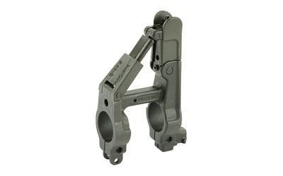 The NEW A.R.M.S.(R) #41(TM)-B-L SILHOUETTE(TM) Front Folding Sight solves the problem of trying to fold the well known triangle shape of the conventional non folding front sights. Barrel mounted in place. Utilizes a rugged spring loaded angled support system to eliminate getting caught up in brush and other combat hazards. Made of steel and also uses the standard front sight post. Folding Front Sight with integral gas block. Fits Standard size AR15 (750) barrel" and has bayonet lug.