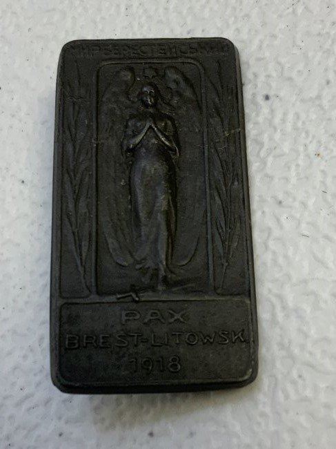AUSTRIAN EMPIRE K.U.K. WWI 1918 CAP BADGE PAX BREST-LITOWSK . ZINK. VERY FINE CONDITION .