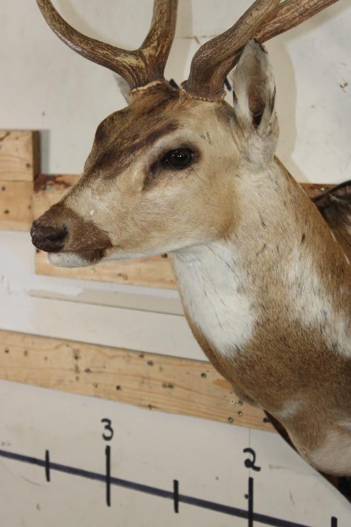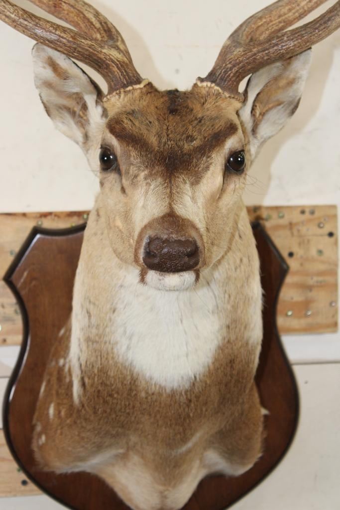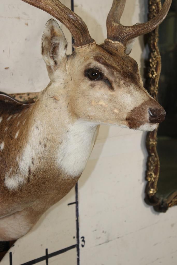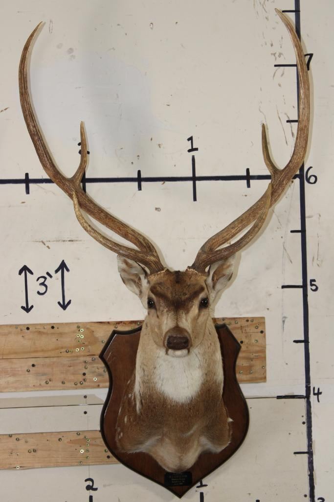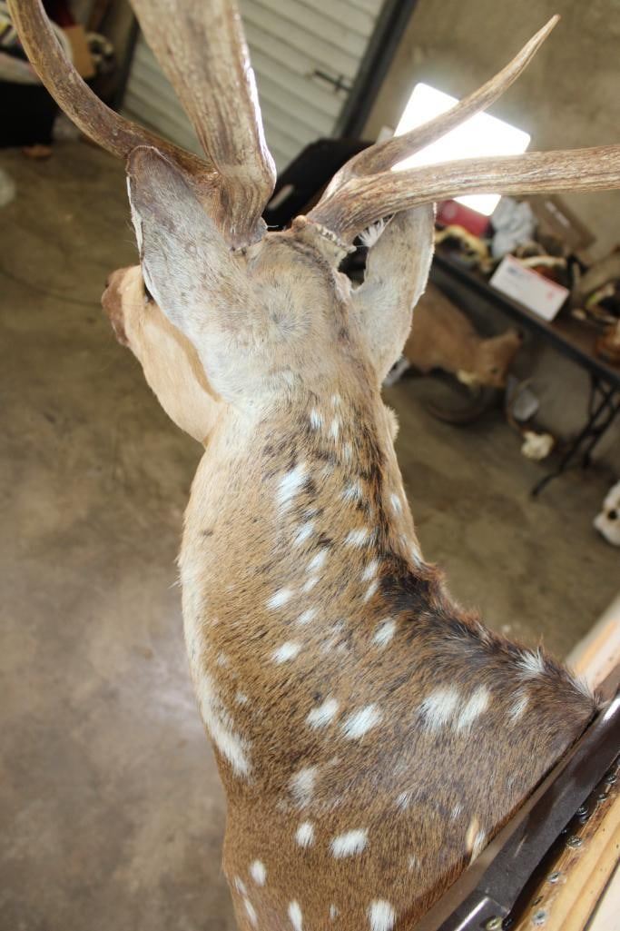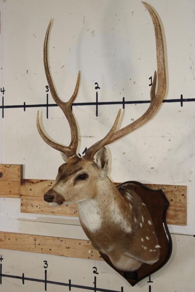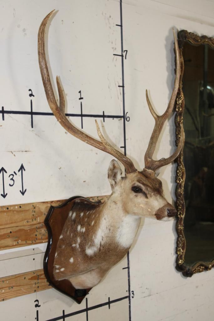 Nice AXIS DEER Shoulder Mount on a Wooden Plaque. It has a 28.75" Spread and was Taken in 1991. TAXIDERMY