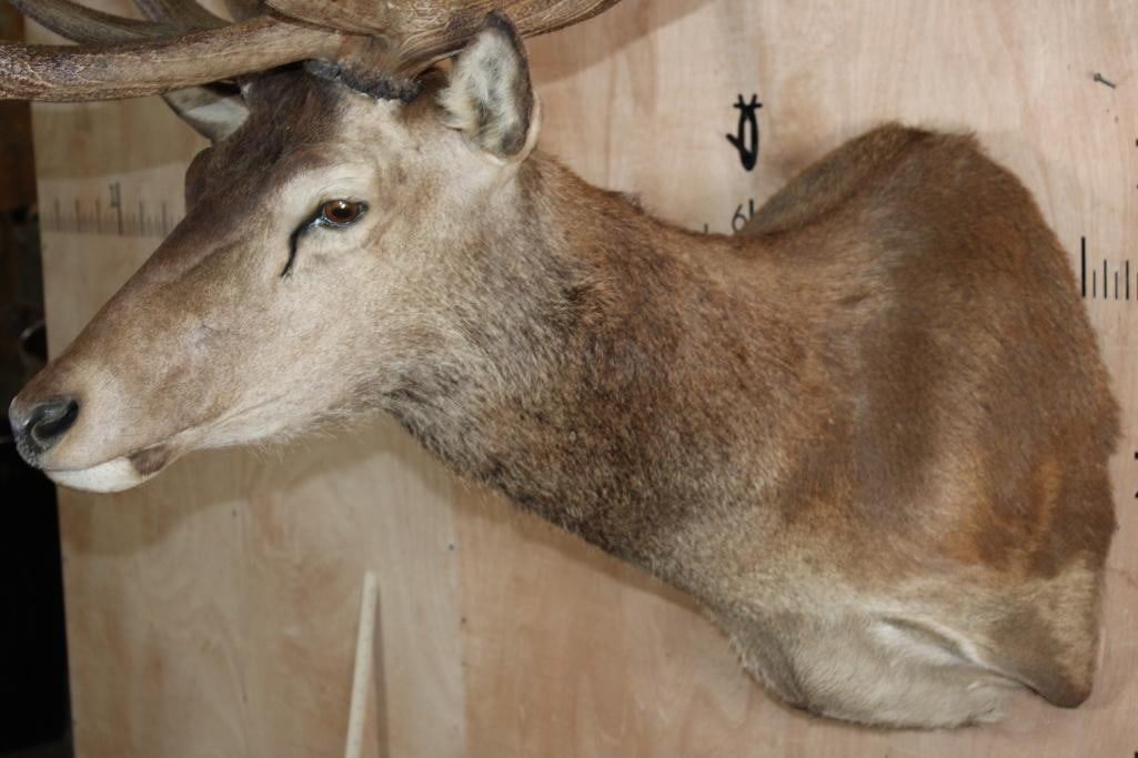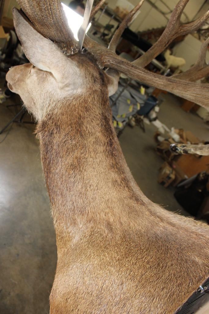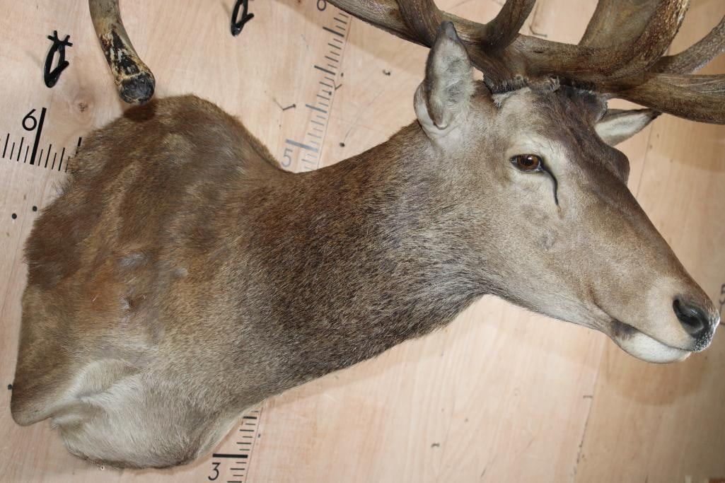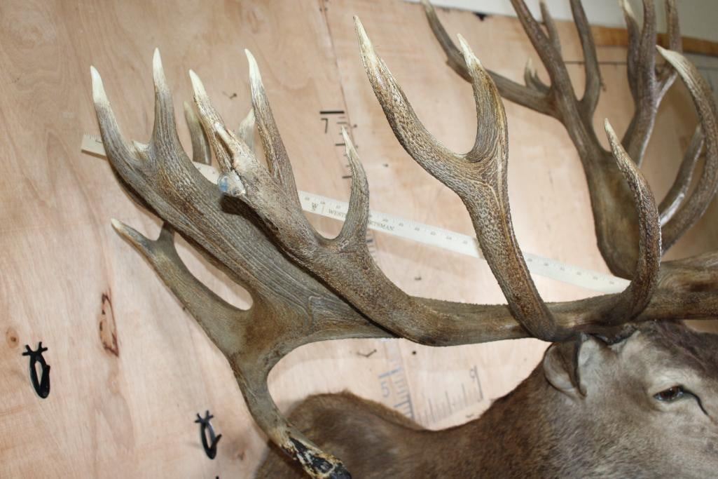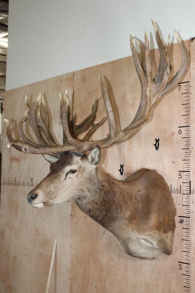 Absolutely Massive Very Nice, Clean, and Newer 31-Point RED STAG Shoulder Mount with a BIG Drop Tine. It has a 53" Spread and is in Very Good Condition. This may be the Biggest we've seen! TAXIDERMY