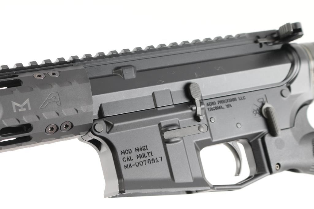 he Aero M4E1 Rifle is built on Aero's Enhanced Series Upper Receiver. Featuring a custom integrated upper receiver and handguard system, free floated barrel, mid-length gas system. Aero Precision Enhanced M-LOK Handguard with grip. AP charging handle16" barrel, 18 3/8 with ported muzzle break, shell deflector, forward assist, matte black finish, Thordsen Customs enhanced FRS-15 Gen II stock/grip, buffer tube, Bore is excellent/bright, overall excellent condition with a couple of very minor scratches.