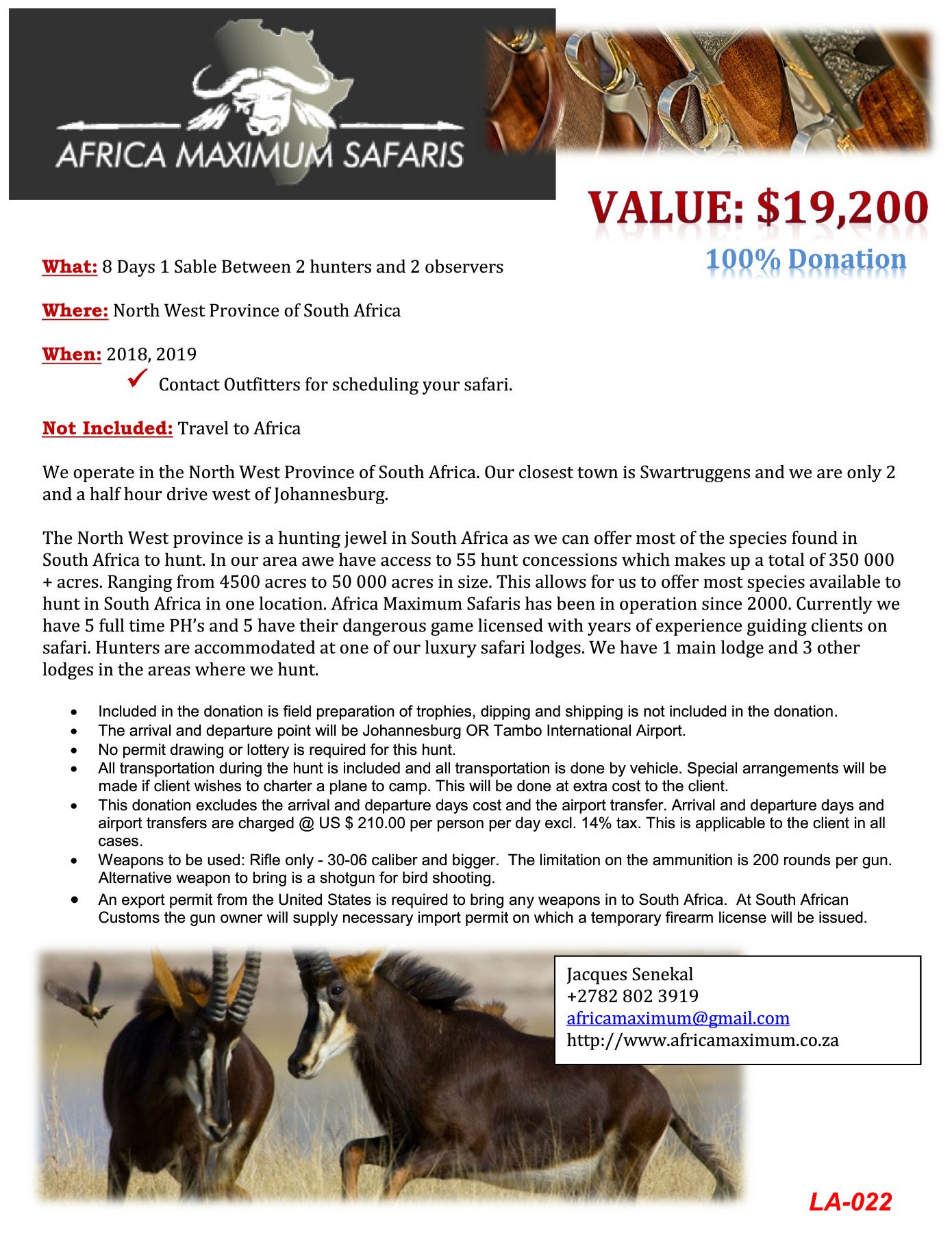 8 Days 2 Hunters - 1 Sable - NW Province