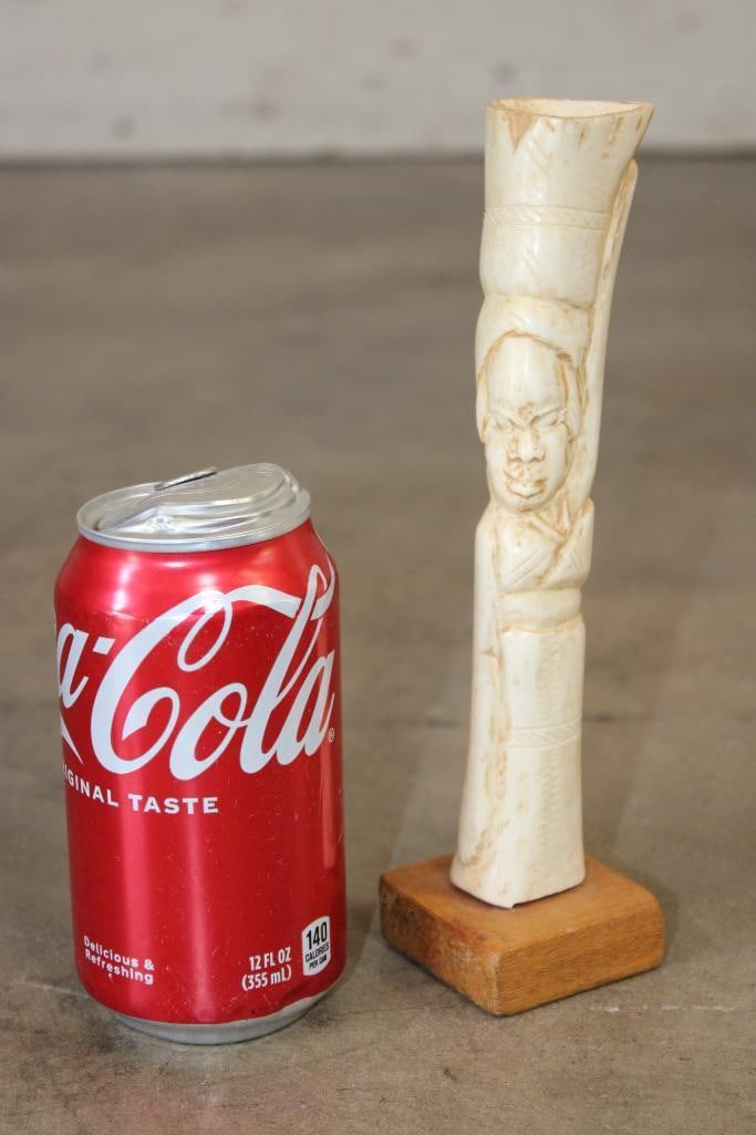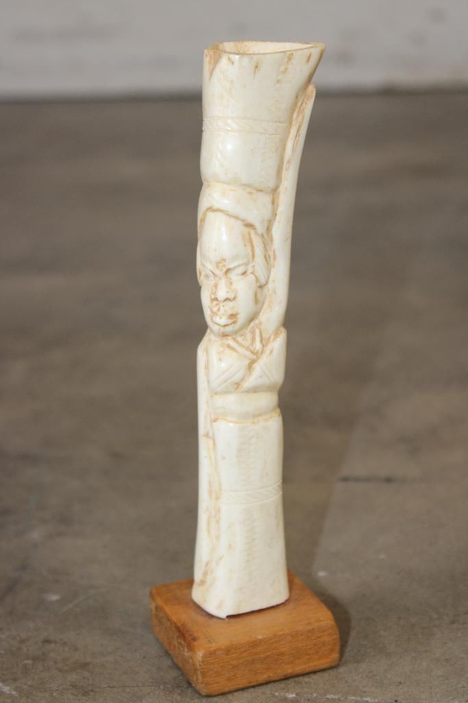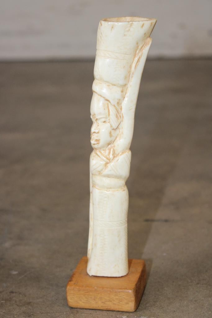 African Woman Figure Statue Carved from Bone on a Wood Stand. It measures 8.5" Tall. COLLECTIBLE AFRICAN ART CARVINGS AND STATUES