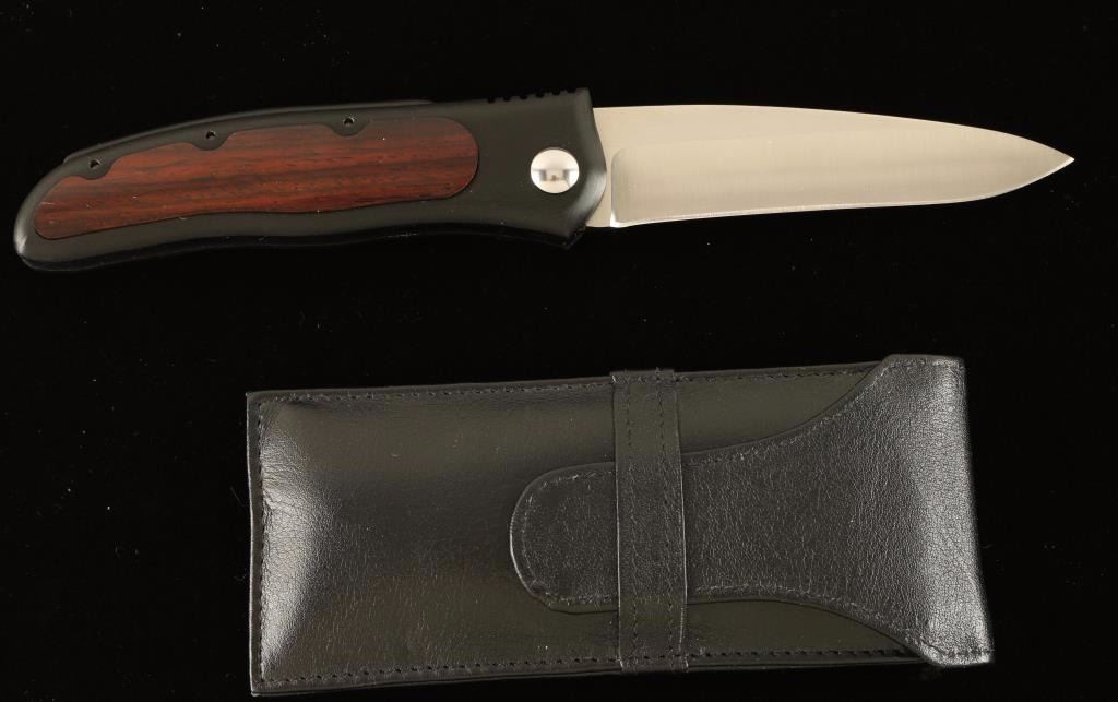 Large Neo with a plain edge and black leather sheath.