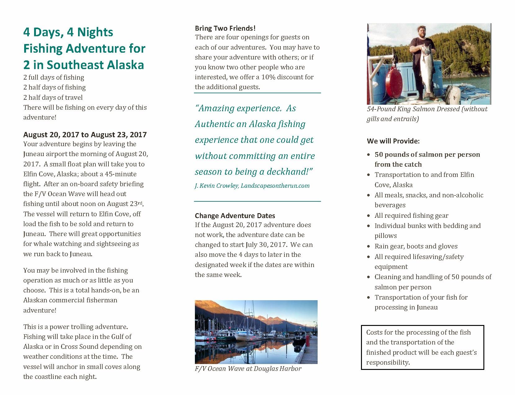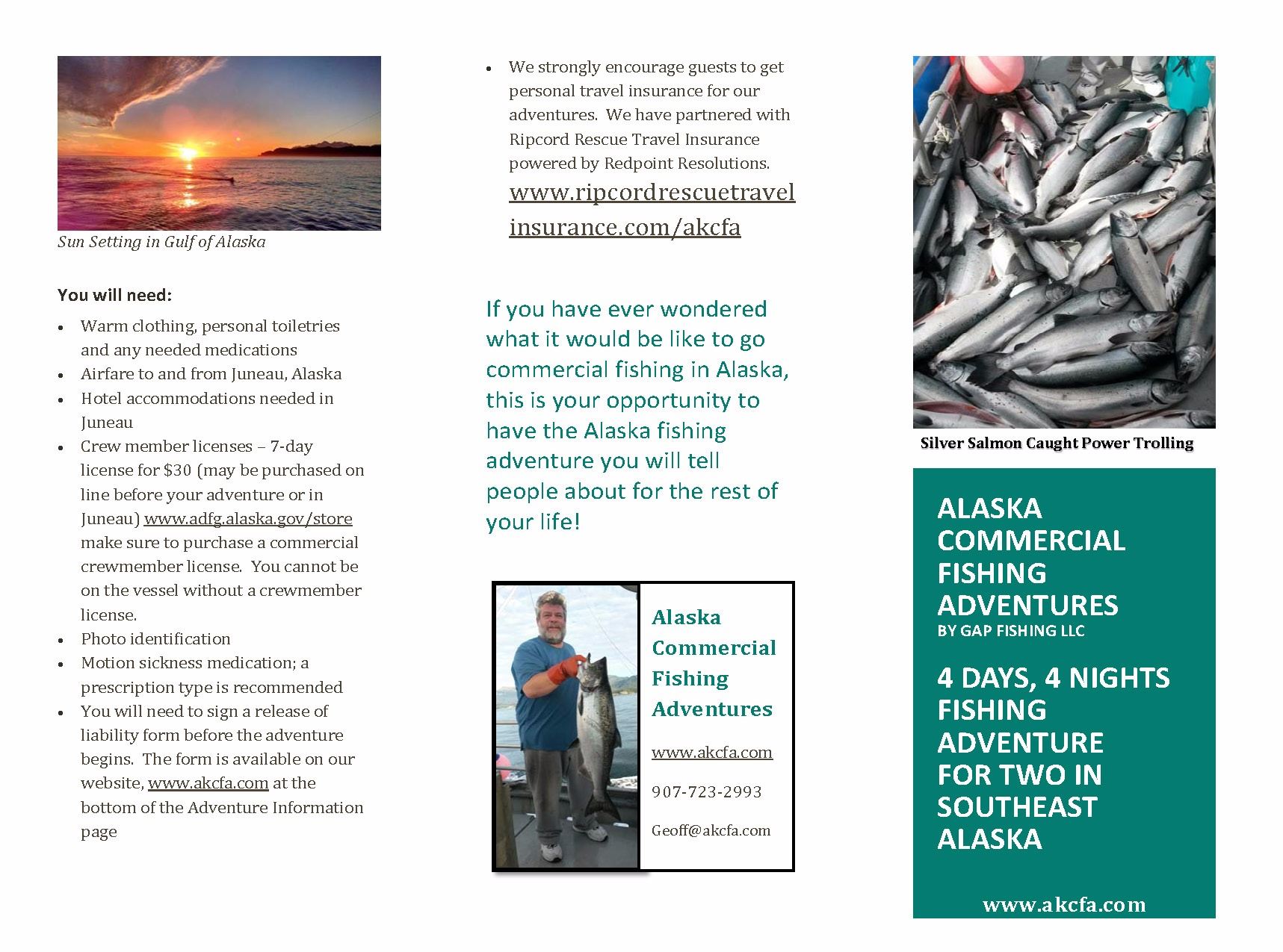 50 pounds of salmon per person from the catch, Transportation to and from Elfin Cove, Alaska