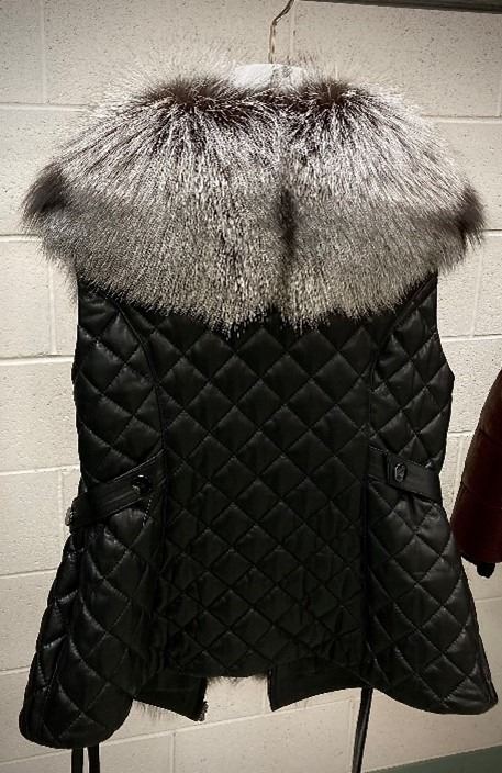 Master Furrier David Green and Sons, Inc of Anchorage, Alaska has donated this beautiful QUILTED BLACK LAMB LEATHER VEST, FULL SKIN NATURAL SILVER FOX COLLAR. ZIPPER FRONT.