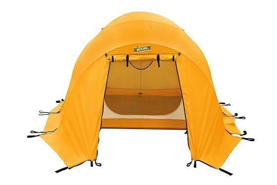 The Arctic Oven tent line just got a little bit cooler! The Arctic Oven Igloo is the first Arctic Oven tent model to boast a geodesic dome shape, providing ample space (79 sq. ft.) with a lot less weight (37 lbs). The geodesic structure is superior in high wind situations because the intersecting poles create triangular sections that distribute the structural stress throughout the tent. In other words, these tents can take on some major wind storms! And at 35% lighter than similar tents of the same size, the Arctic Oven family is excited to welcome pilots, rafters and explorers who have been holding back on owning an Arctic Oven tent due to the weight of other Arctic Oven tent models. This tent comes in the Realtree Outdoor pattern.