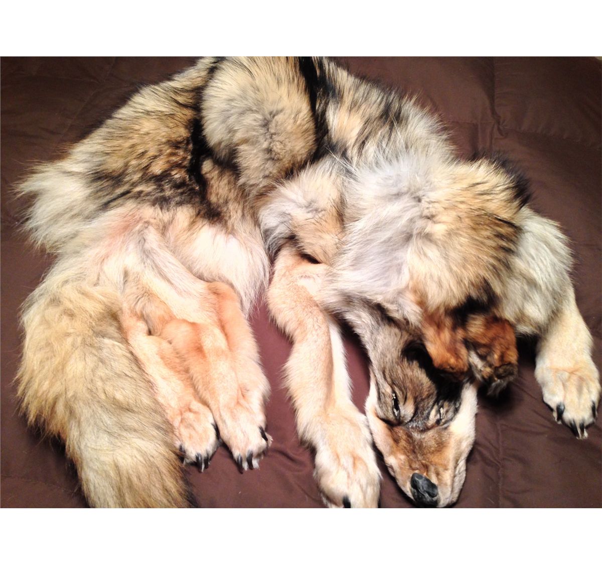 This amazing predator was harvested by RMBS Board member, Jack Hinds. Wolves are a common part of the ecosystem in Alaska and are managed as game animals. This beautiful blond hide with black accents is suitable for mounting as well as displaying in its current tanned state.