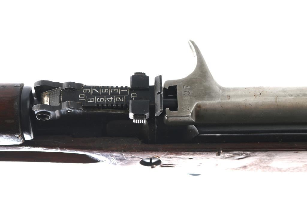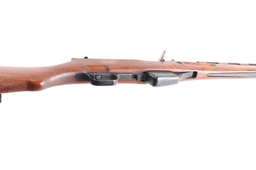 Imported by TG, Knoxville TN. Rare Albanian SKS rifle made in 1968. The Albanian SKS is the rarest of the mass-produced SKS' outside of North Korean, North Vietnamese, and East German made rifles. The Albanian SKS is different from other models as they made some changes like the AK style bolt handle, and the elongated stock and handguard for the gas system. 20.5" barrel, 11" folding spike bayonet, two trapdoors in butt plate for cleaning gear, both have cleaning gear. Serial numbers matched on the receiver, gas tube, gas piston, bolt, bolt carrier, top cover, magazine, trigger guard, rear sight & stock. Bore is excellent/bright, blue finish is mostly all there, with scratches, edge/handling wear, and a couple of patches of very light pitting on the cover, action is smooth, the wood is very good/sound, with minor blemishes & a small crudely repaired break on the right side of the handguard.