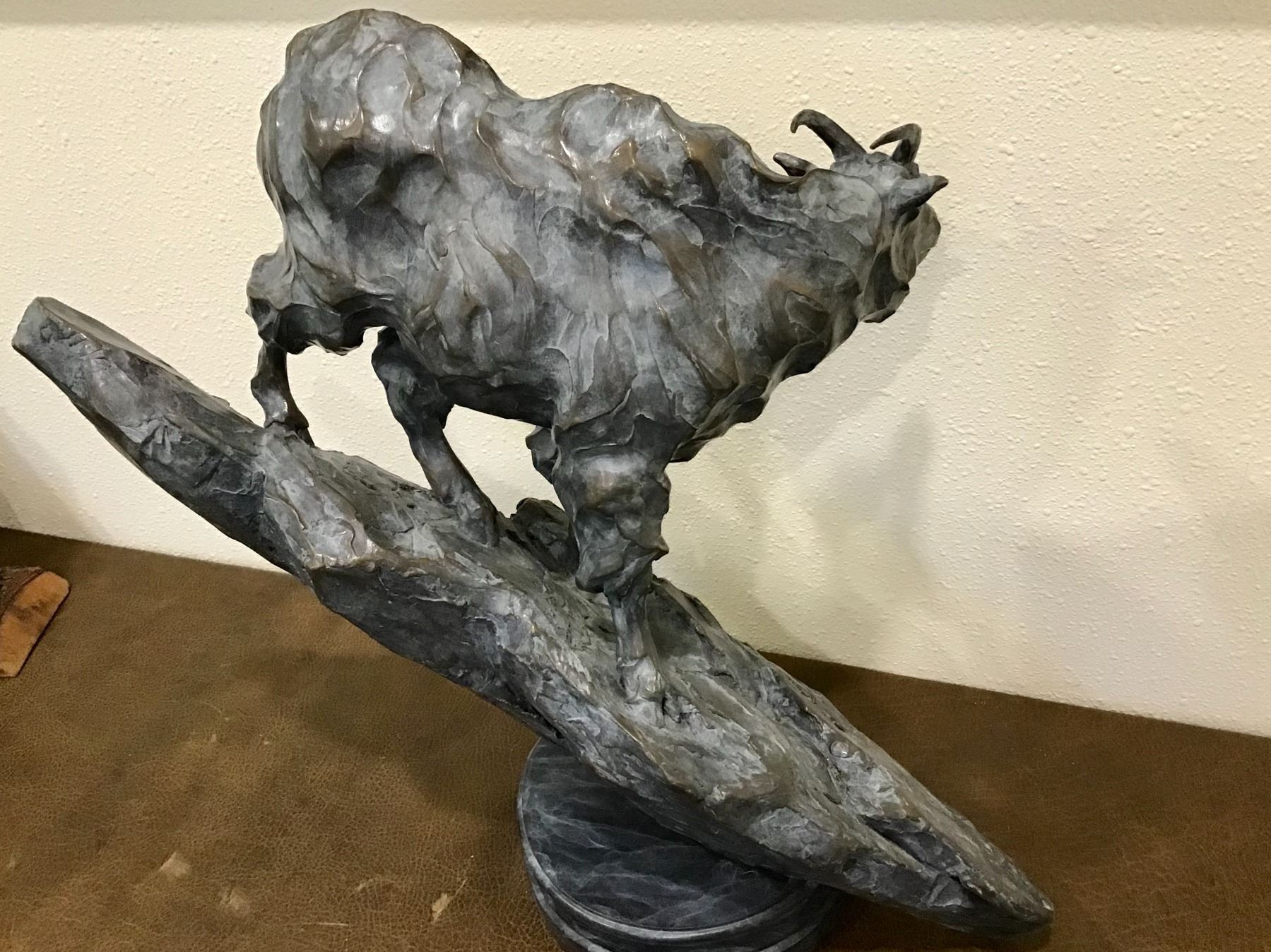‘Along the Headwall’ features a Mountain Goat. This Bronze measures approximately 19” Tall and 25” in Length. It is number 19 of 35 and is signed by Shinabarger.