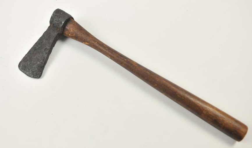 An excavated iron tomahawk possibly Revolutionary War period. The head showing great age and measures 5 /58” long. The shaft appears to be of great age and beautifully patinated. Measures 15 ¾” overall. Est.:$300-$600