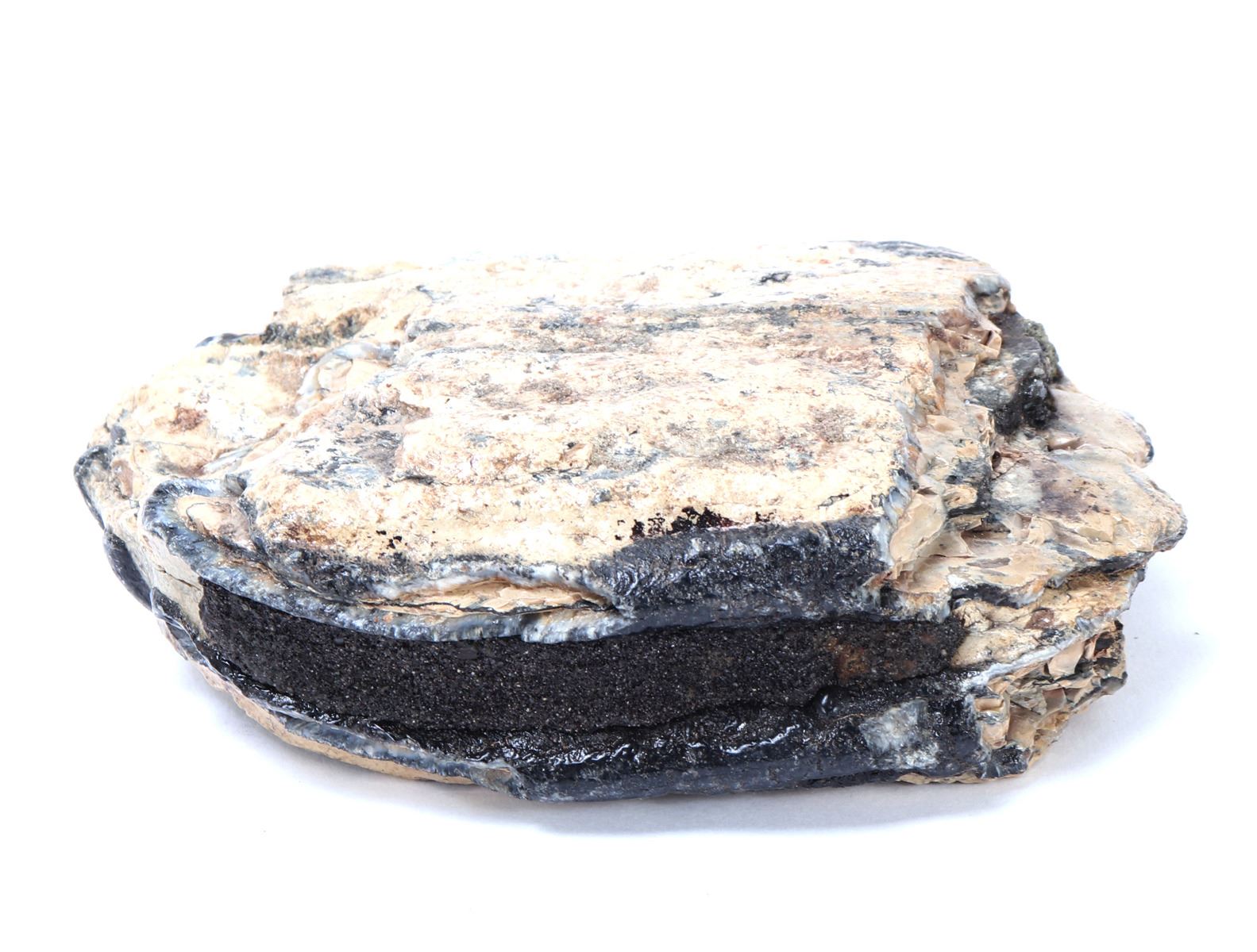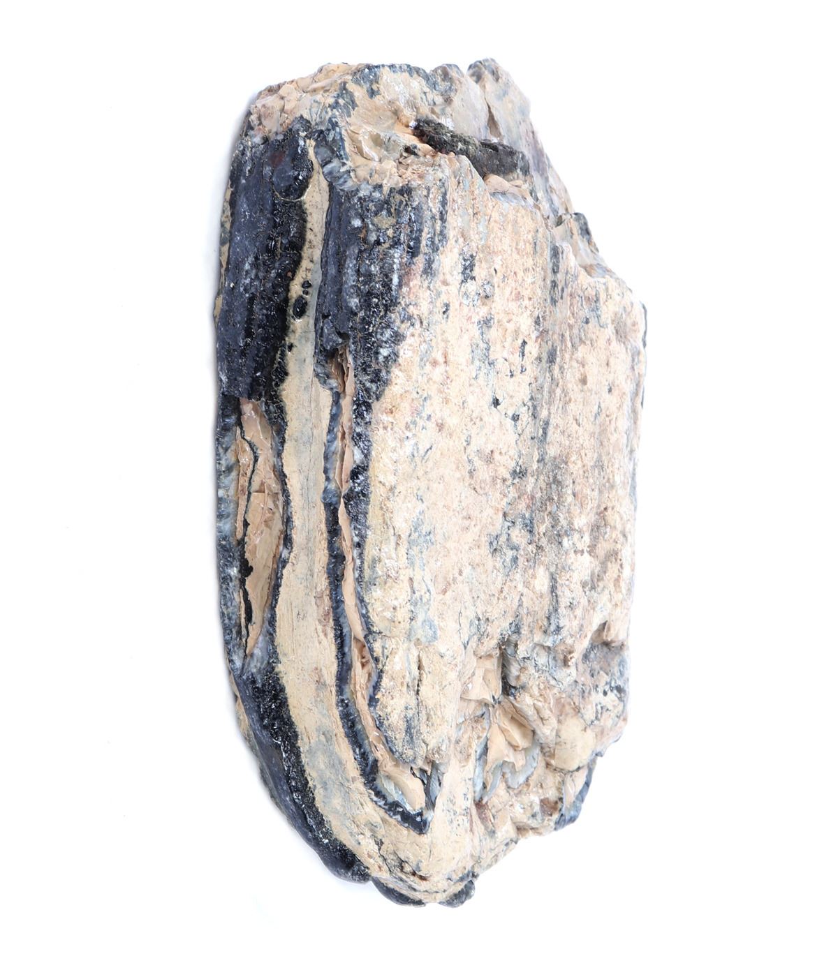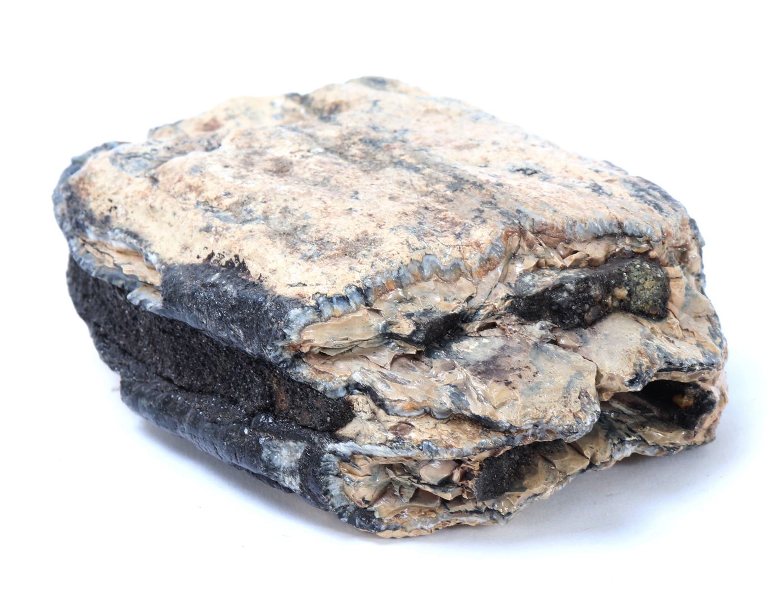 Ancient fossilized woolly mammoth molar section with natural earth deposits still remaining. Woolly mammoth were known for each grasses, sedges, and other vegetation, making it so they didn't require sharp canines like others. Size 5" L, Weight 556 g. Condition: Well overall preserved condition.