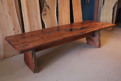 This is an old growth ancient red wood table. It once reached up to 100 feet or even higher heights pointing to the universe above.