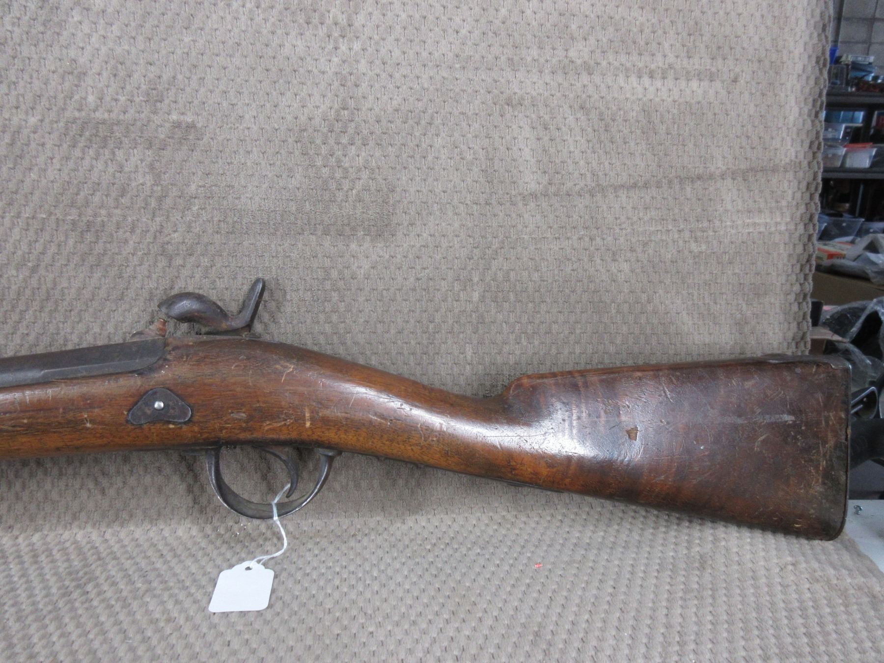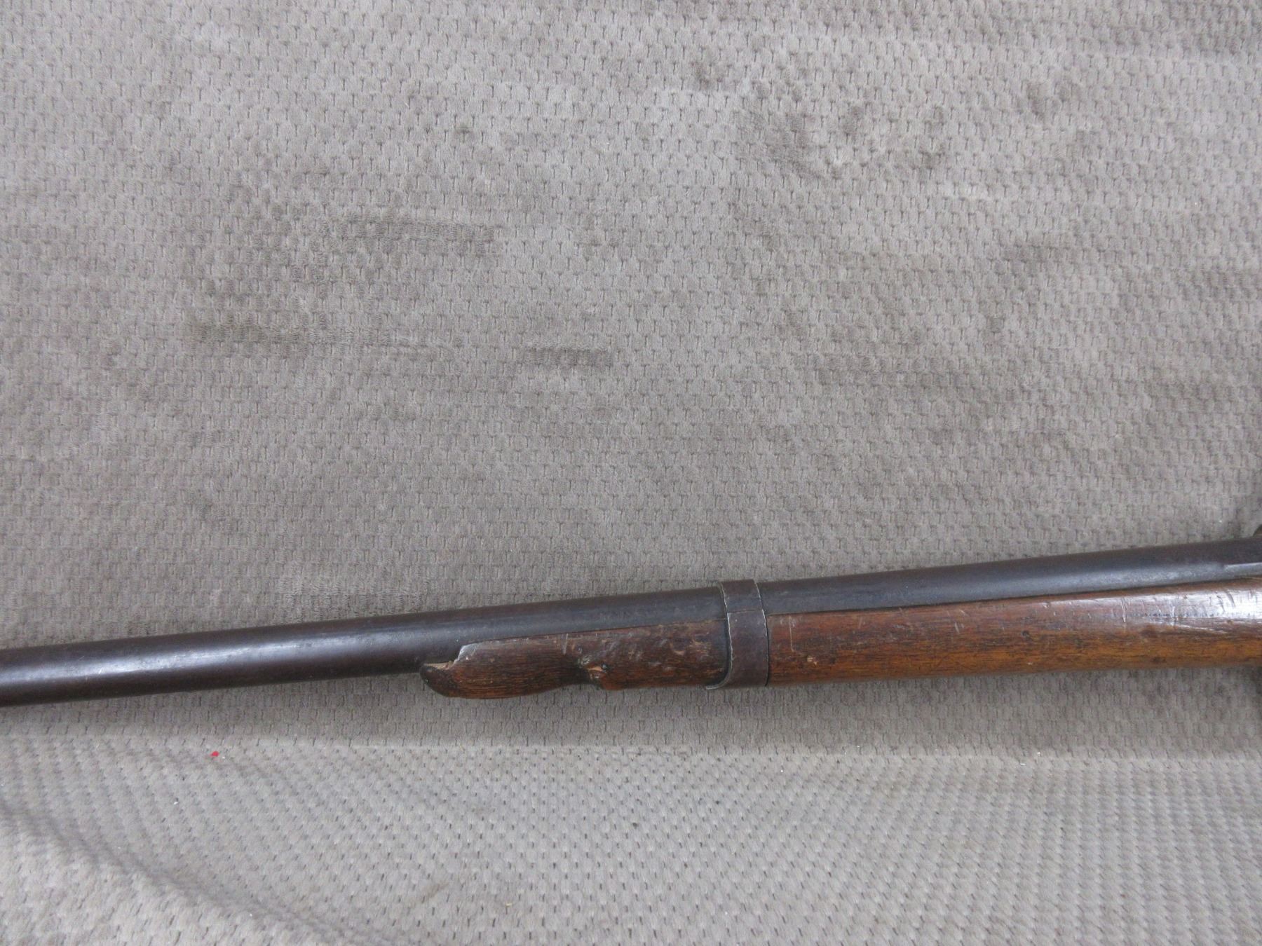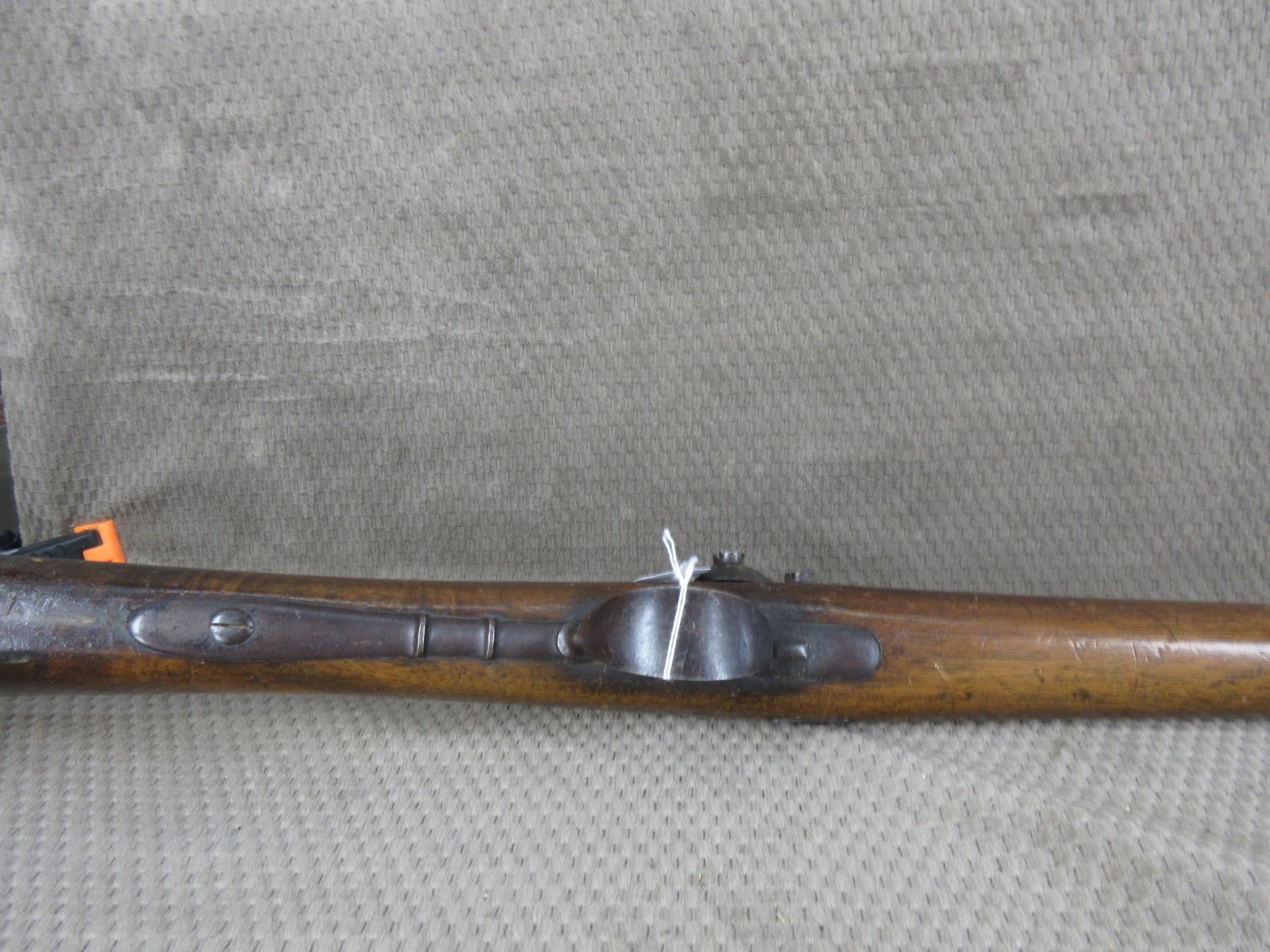 Antique - 1805 Austrian Potsdam Musket in 69 Caliber - This cap & ball muzzle loarder appears be in working order as it cocks & fires but nipple is poor. Barrel is approximately 34", bore has rifling but is pitted, bluing if brown, has front bead, no rear sight, stock is good with some chips and appears to not have any cracks, metal buttplate. This gun appears to have been sporterized and is missing ramrod.