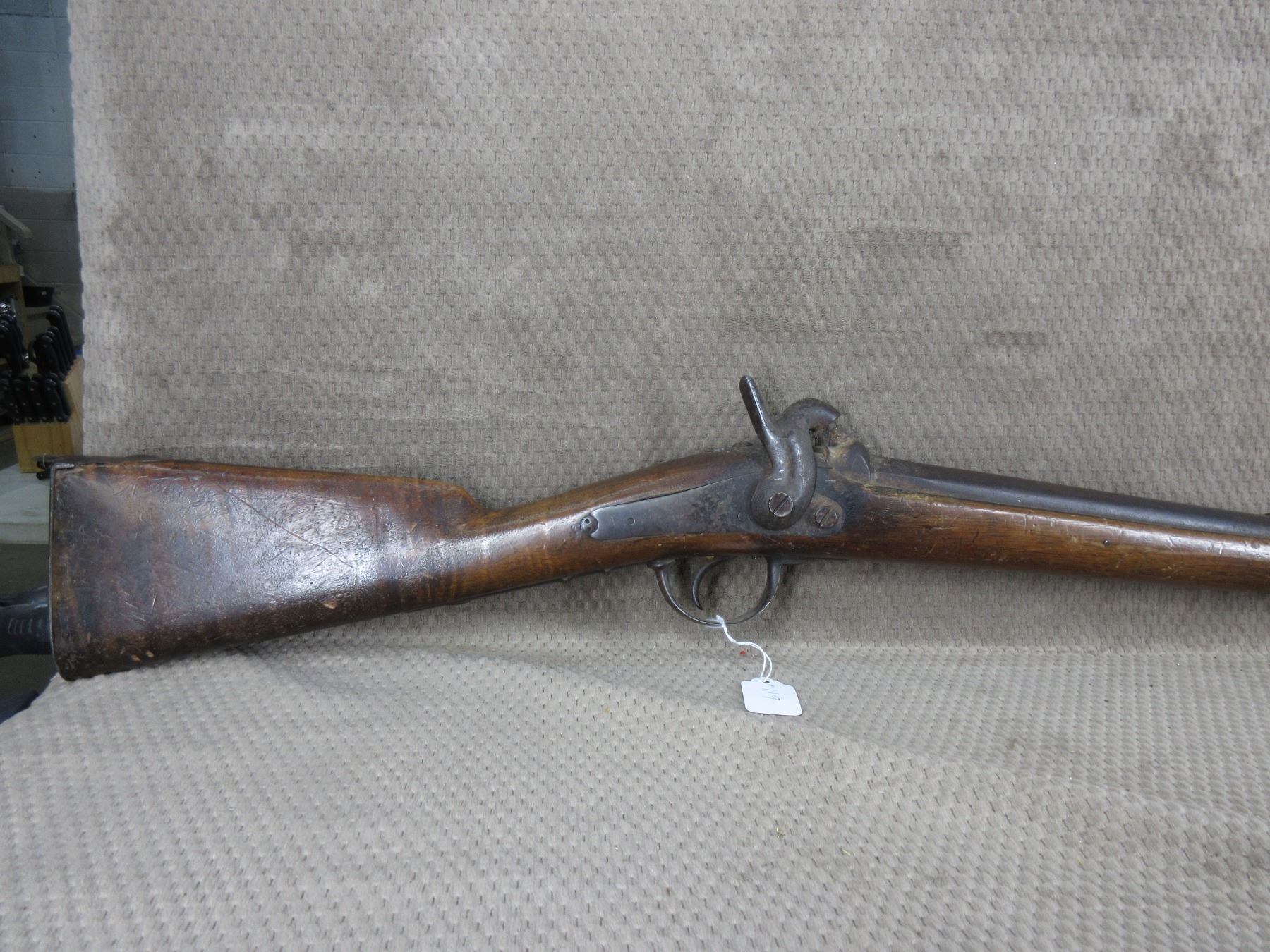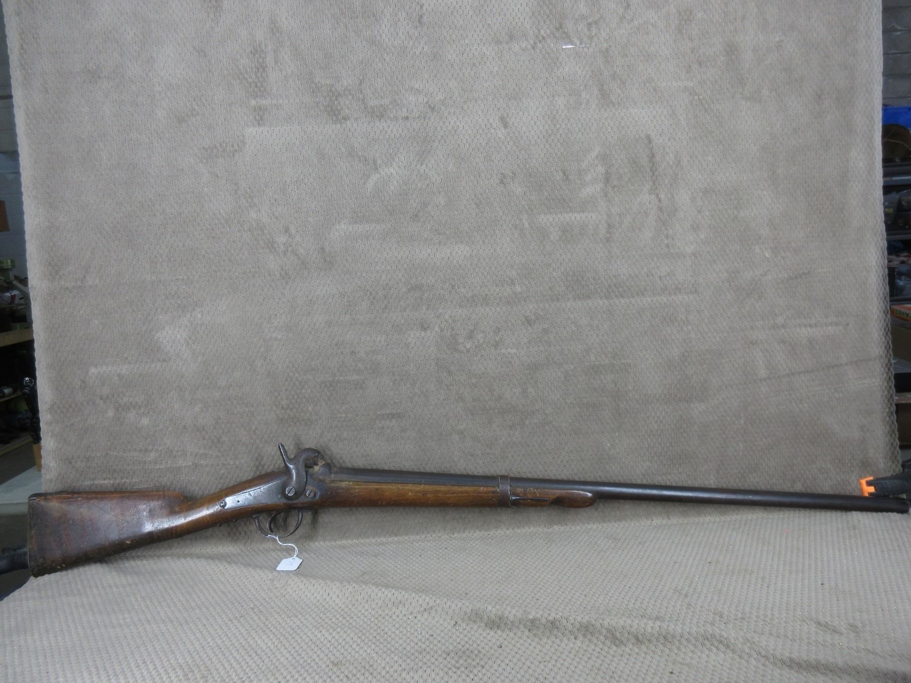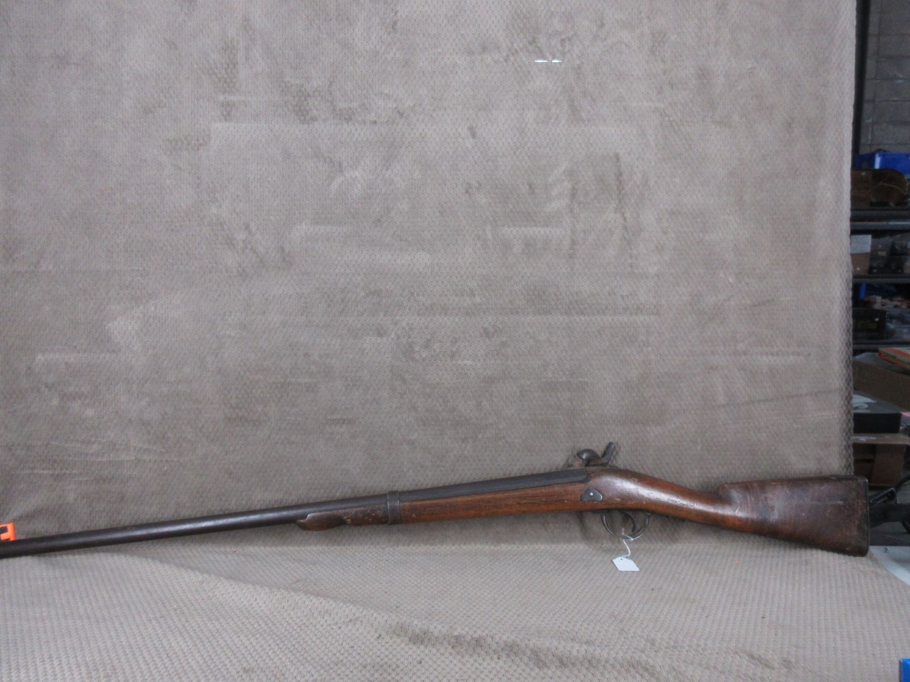 Antique - 1805 Austrian Potsdam Musket in 69 Caliber - This cap & ball muzzle loarder appears be in working order as it cocks & fires but nipple is poor. Barrel is approximately 34", bore has rifling but is pitted, bluing if brown, has front bead, no rear sight, stock is good with some chips and appears to not have any cracks, metal buttplate. This gun appears to have been sporterized and is missing ramrod.
