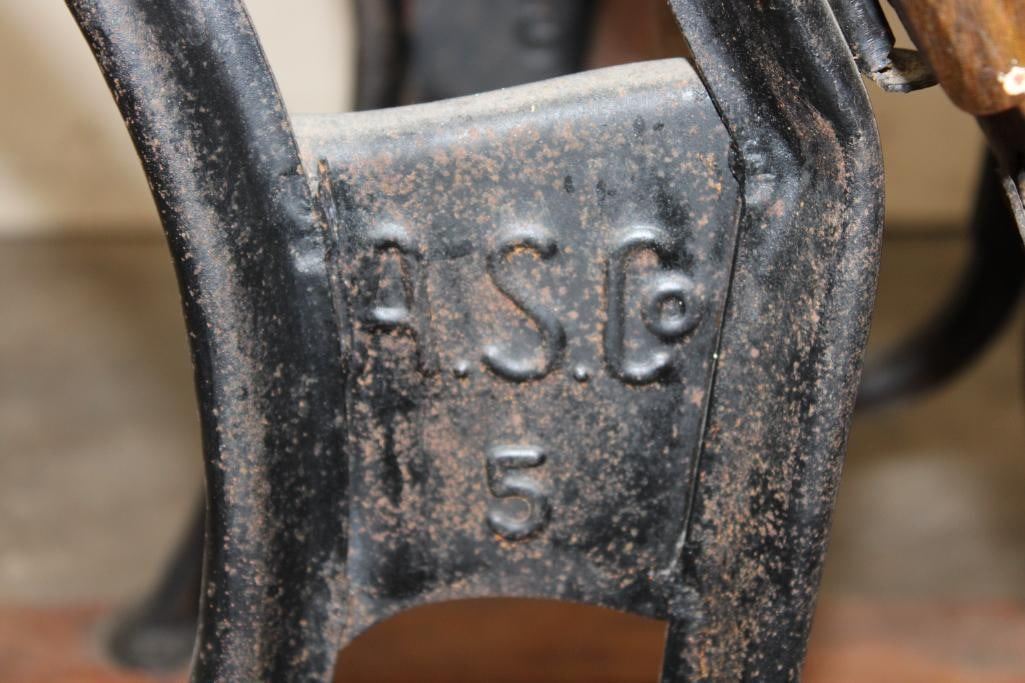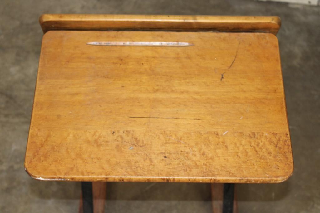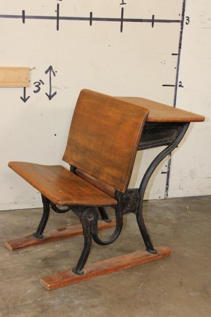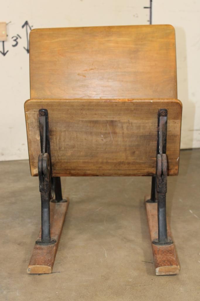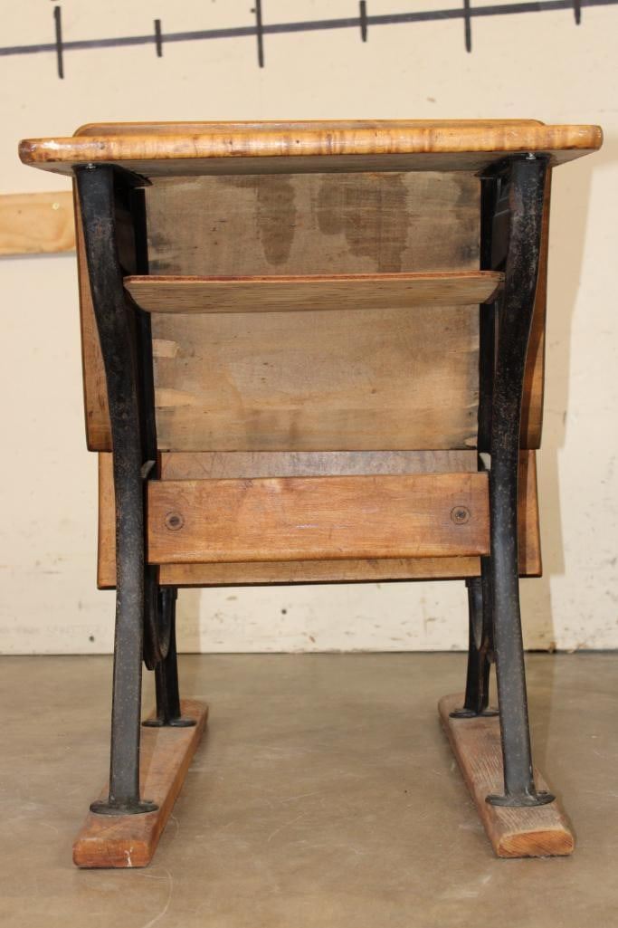 Antique "American Seating Company" SCHOOL DESK with a Folding Seat. It is made of Wood and Iron and measures 28" Long x 17.5" Wide x 26" Tall. It is stamped "A.S.Co 5". ANTIQUE DESKS AND FURNITURE