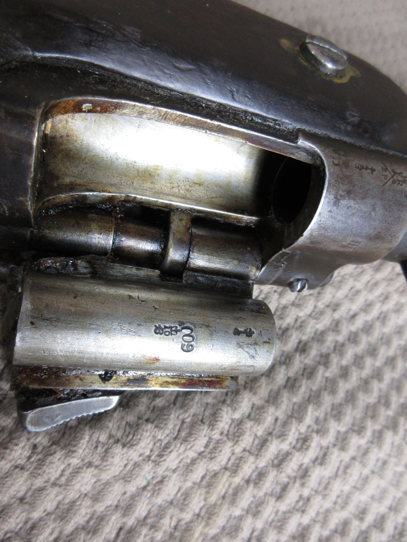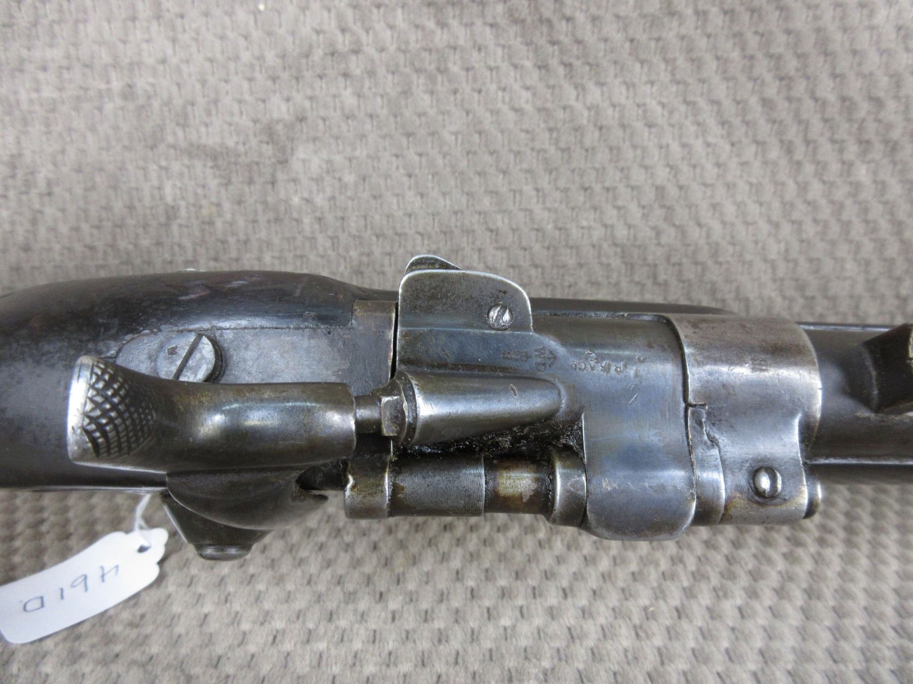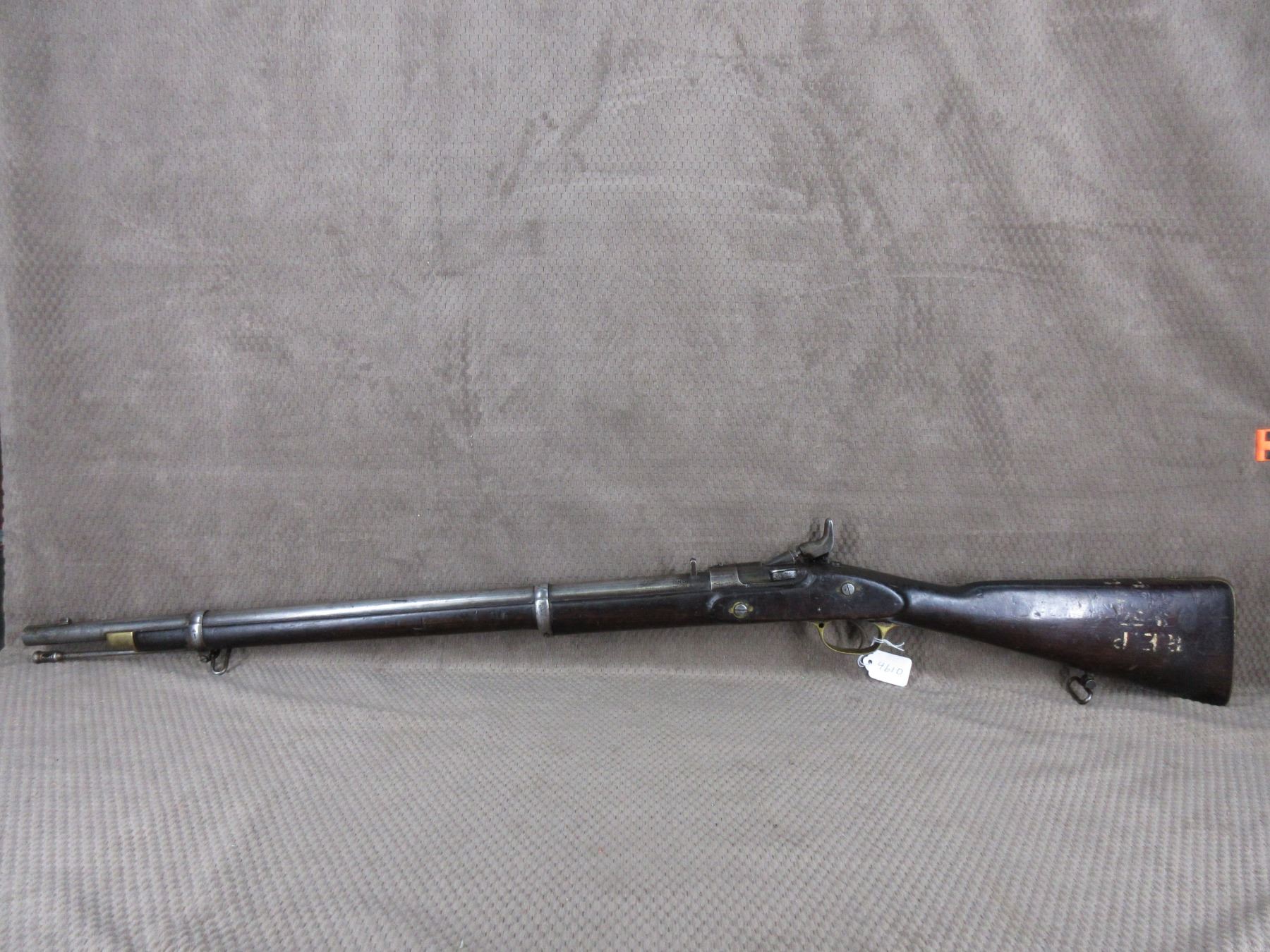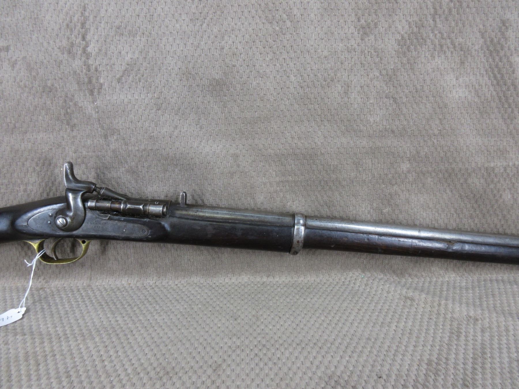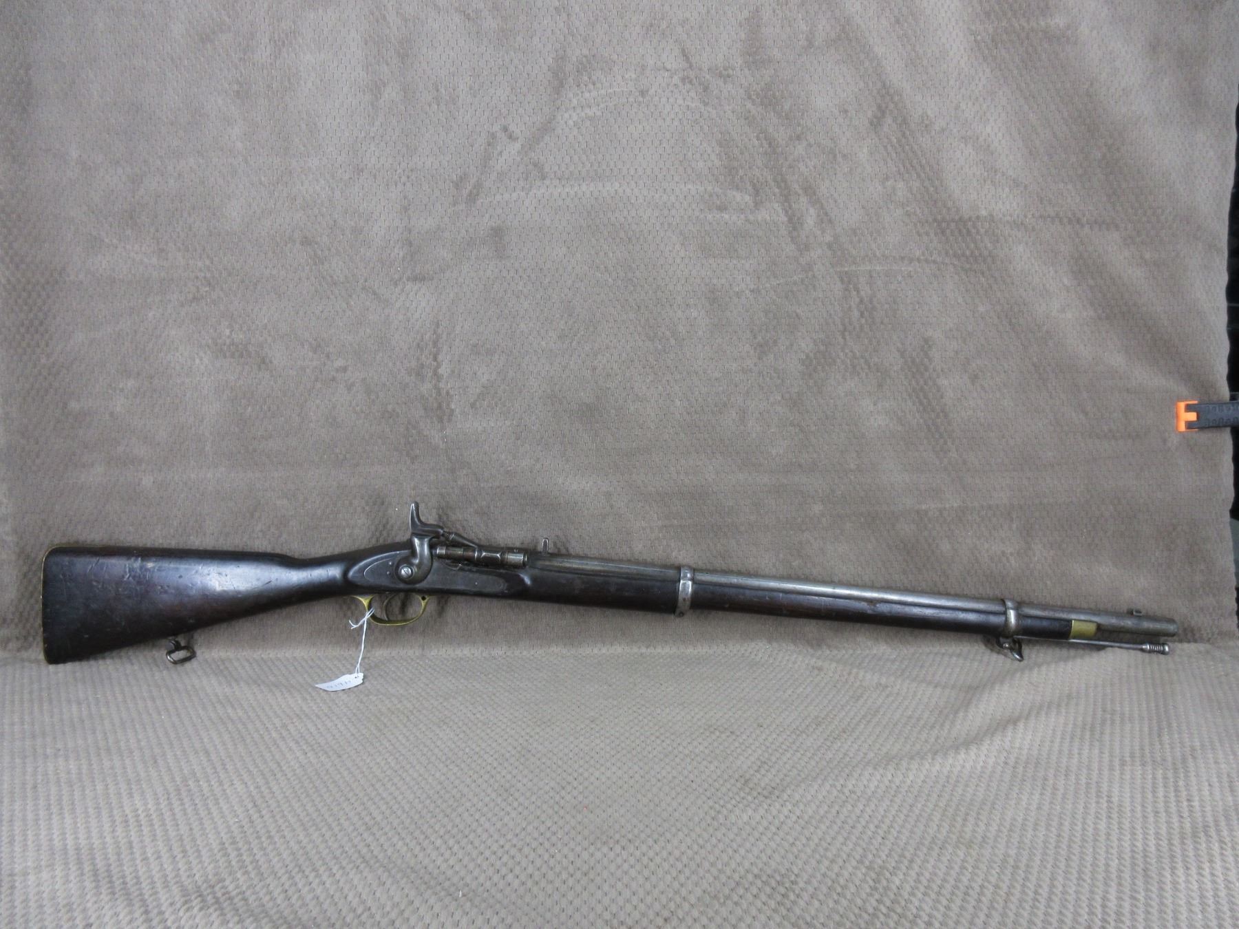 Antique - B.S.A. & M.Co. 1877 in 577 Snider??? - This single shot rifle/shotgun appears to be in working order. Barrel is 26 5/8", this is a smoothbore and is somewhat shiny, has both sights, rear sight it is very different, bluing is mostly gone, stock fair to good with minor cracks by lock, chip in forearm and usual usage marks, has cleaning rod, brass butt plate.