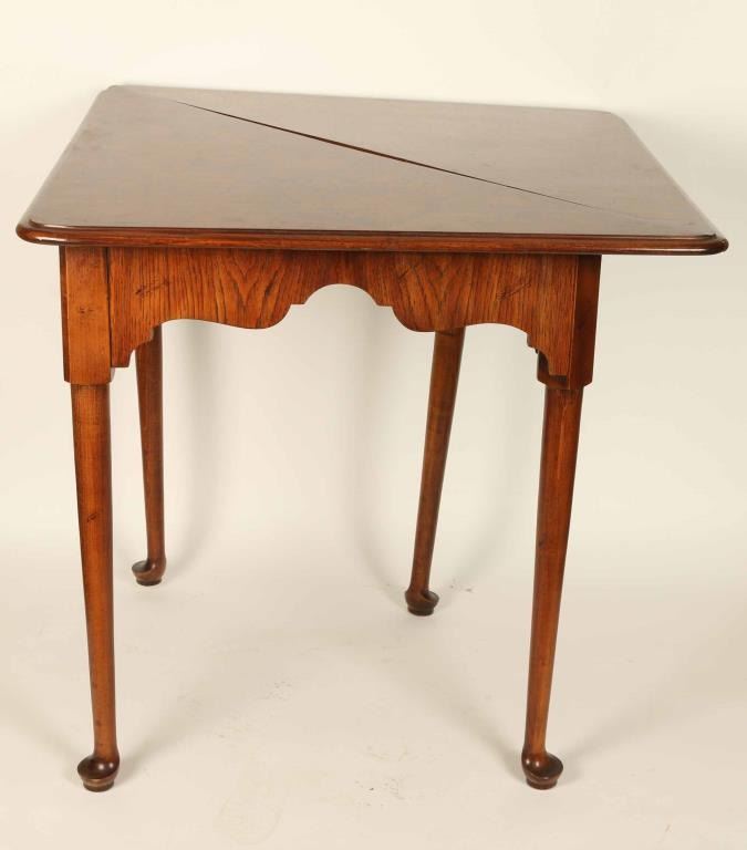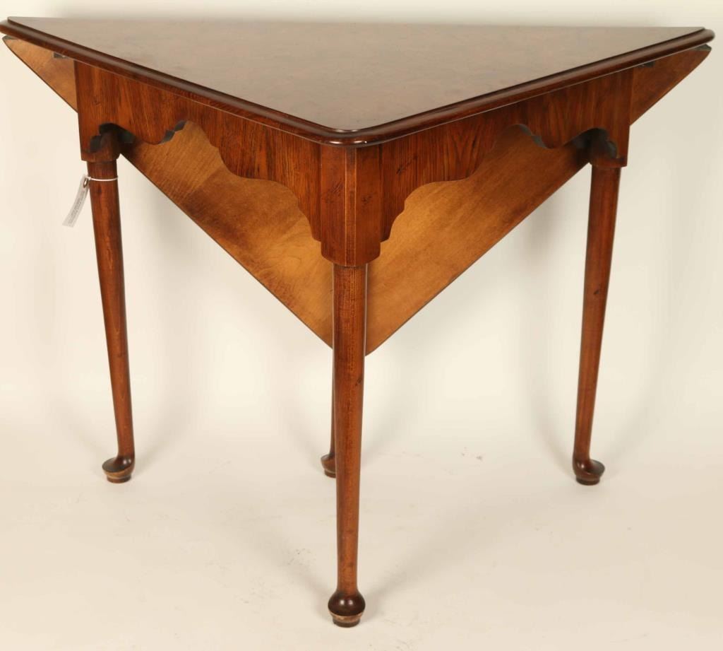 Square Shape which brakes down to triangle, measures 29" x 30" x 30" open. In overall good condition. One of the legs to this table is broken.