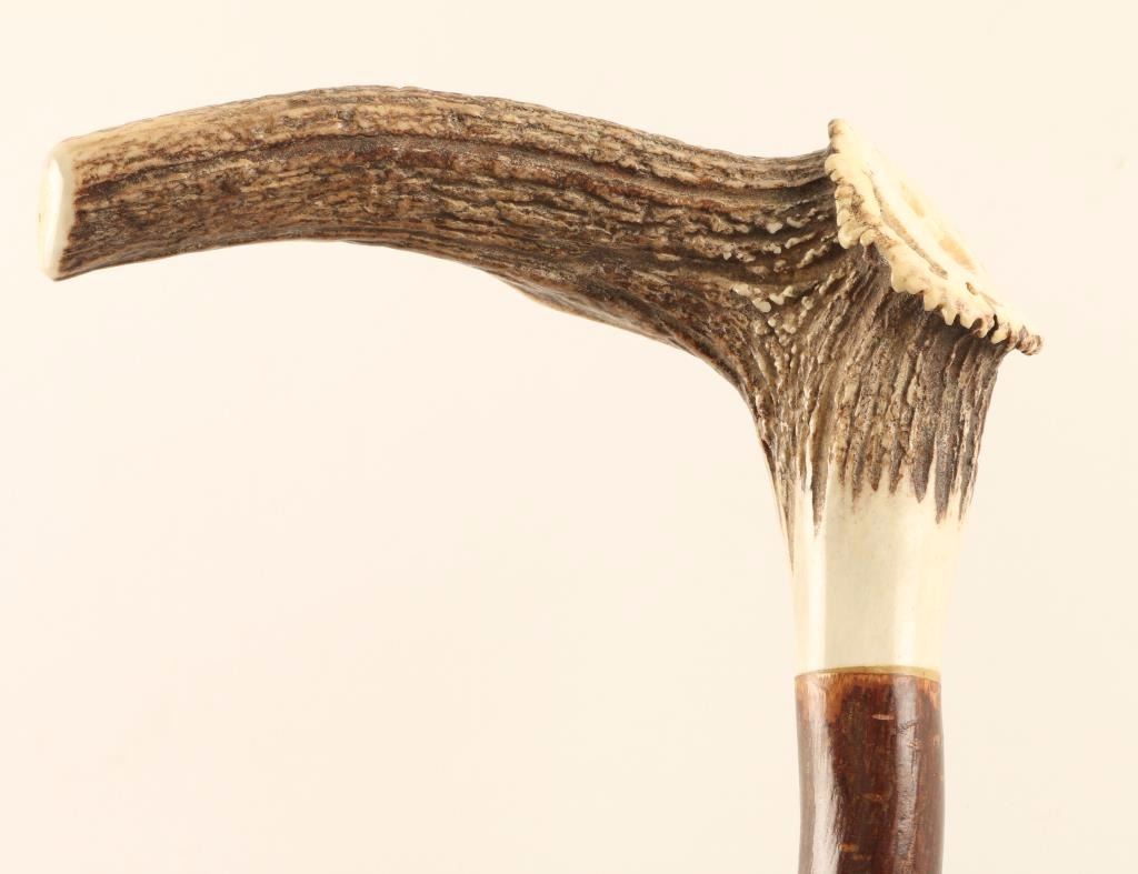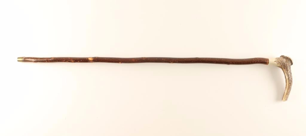 Antler Handle with a wood branch for the stem with brass cap.