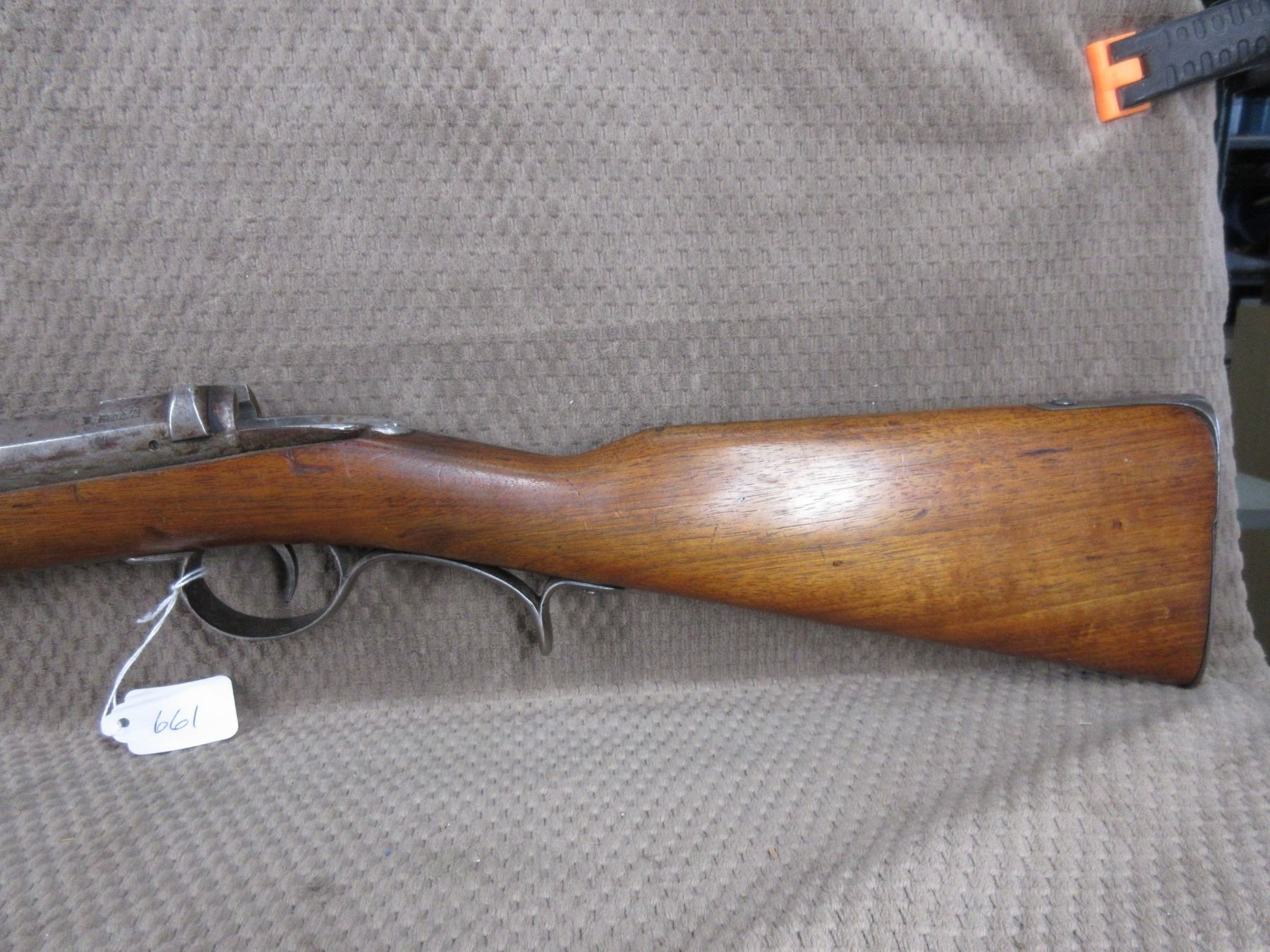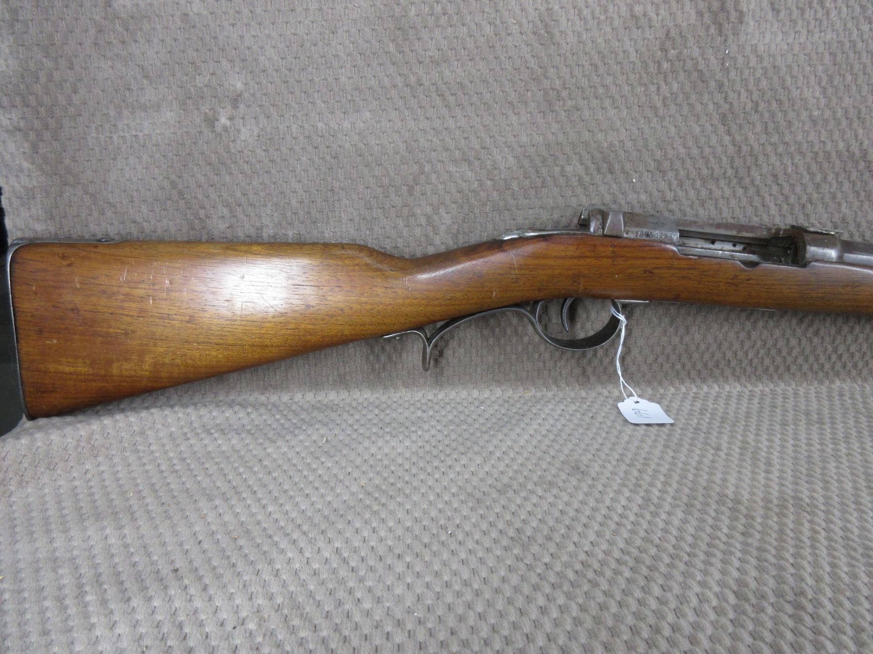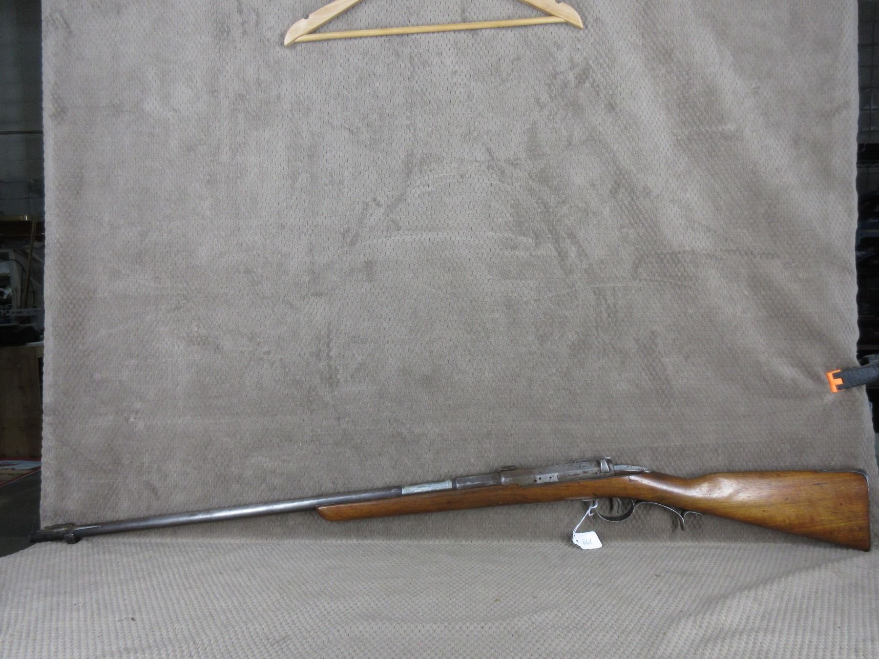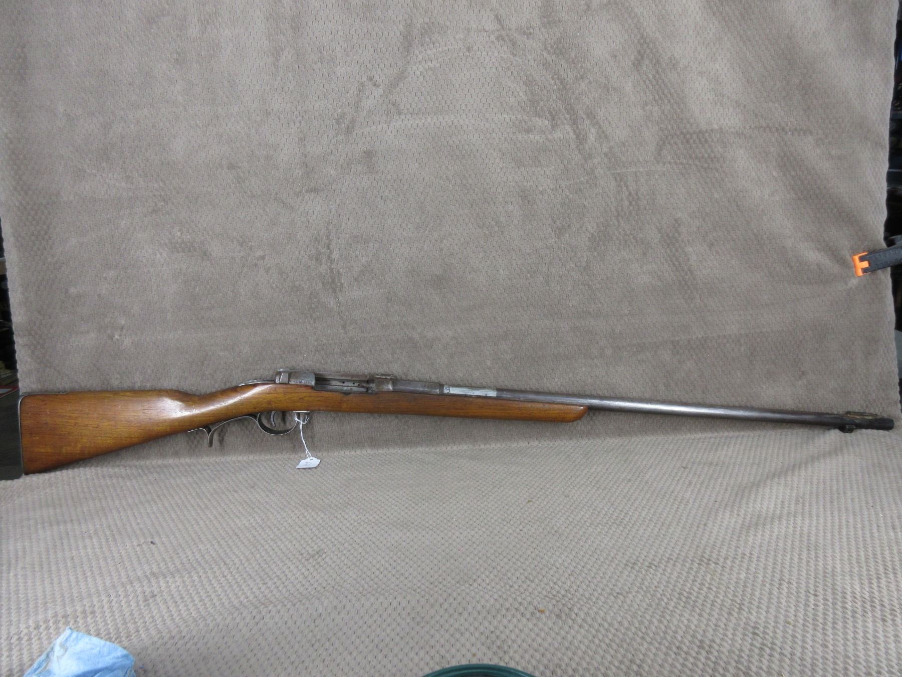 Antique - Mauser Model 71 in 11MM - This single shot bolt action rifle is a parts gun as bolt is missing. Barrel is 29 1/2", rifling is good to very good, bluing is gone, has no sights, stock is good to very good, metal butt plate.