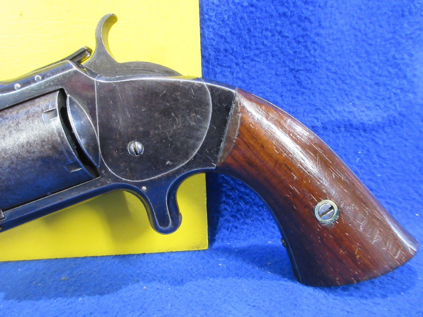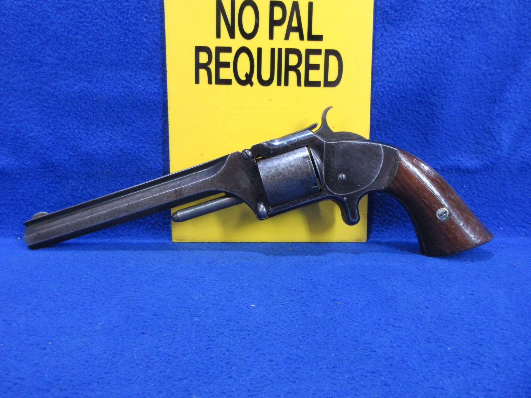 Antique - No PAL Required - Smith & Wesson #2 Army in 32 RF - Circa 1860's, rare and desirable. This six shot single action revolver appears to be in good to very good working order. Barrel is 6". rifling is good to very good for age, bluing mostly gone with light pitting, has both sights, wood grips are good for age. Ser # 992