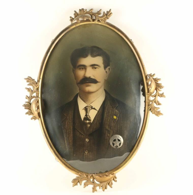 in a concave antique gold metal frame, badge reads "SPECIAL OFFICER". Hand colored photo 23" x 17"