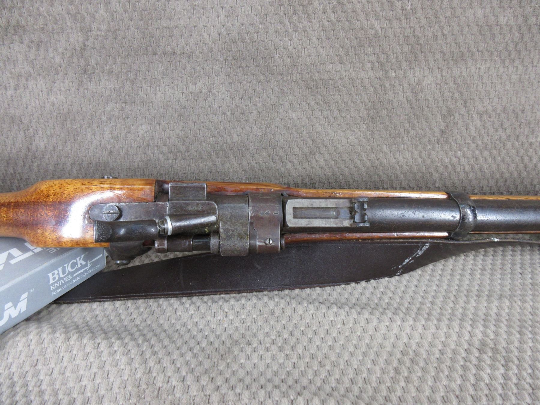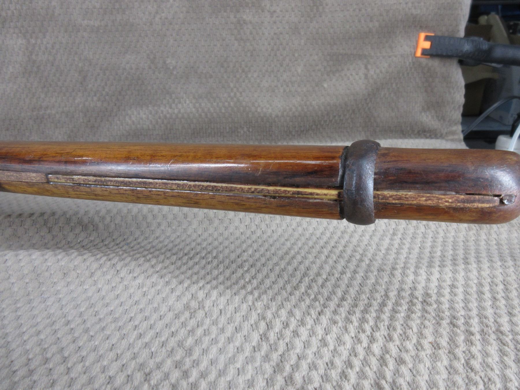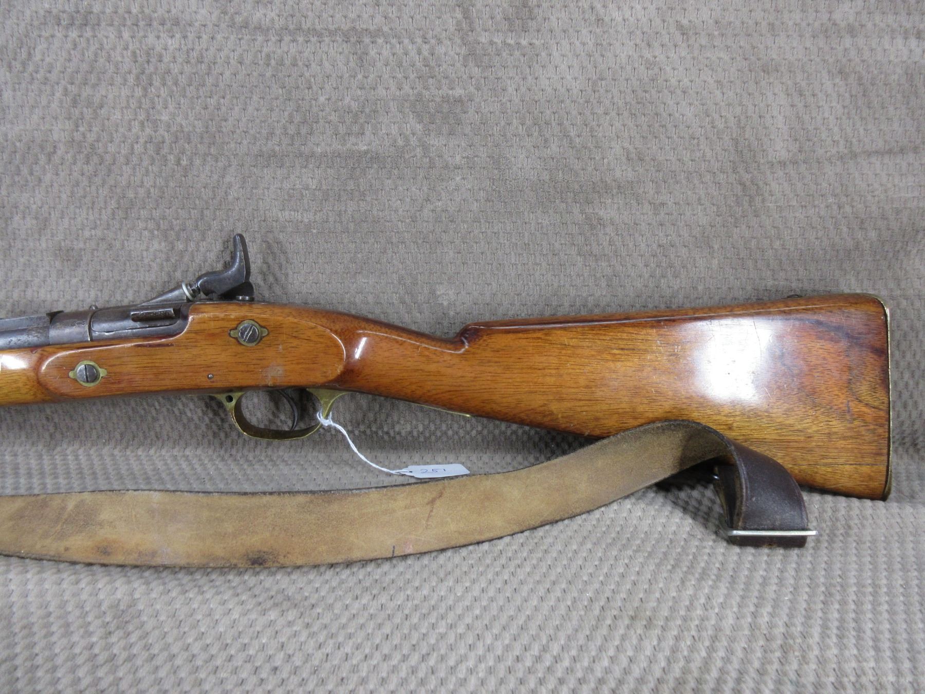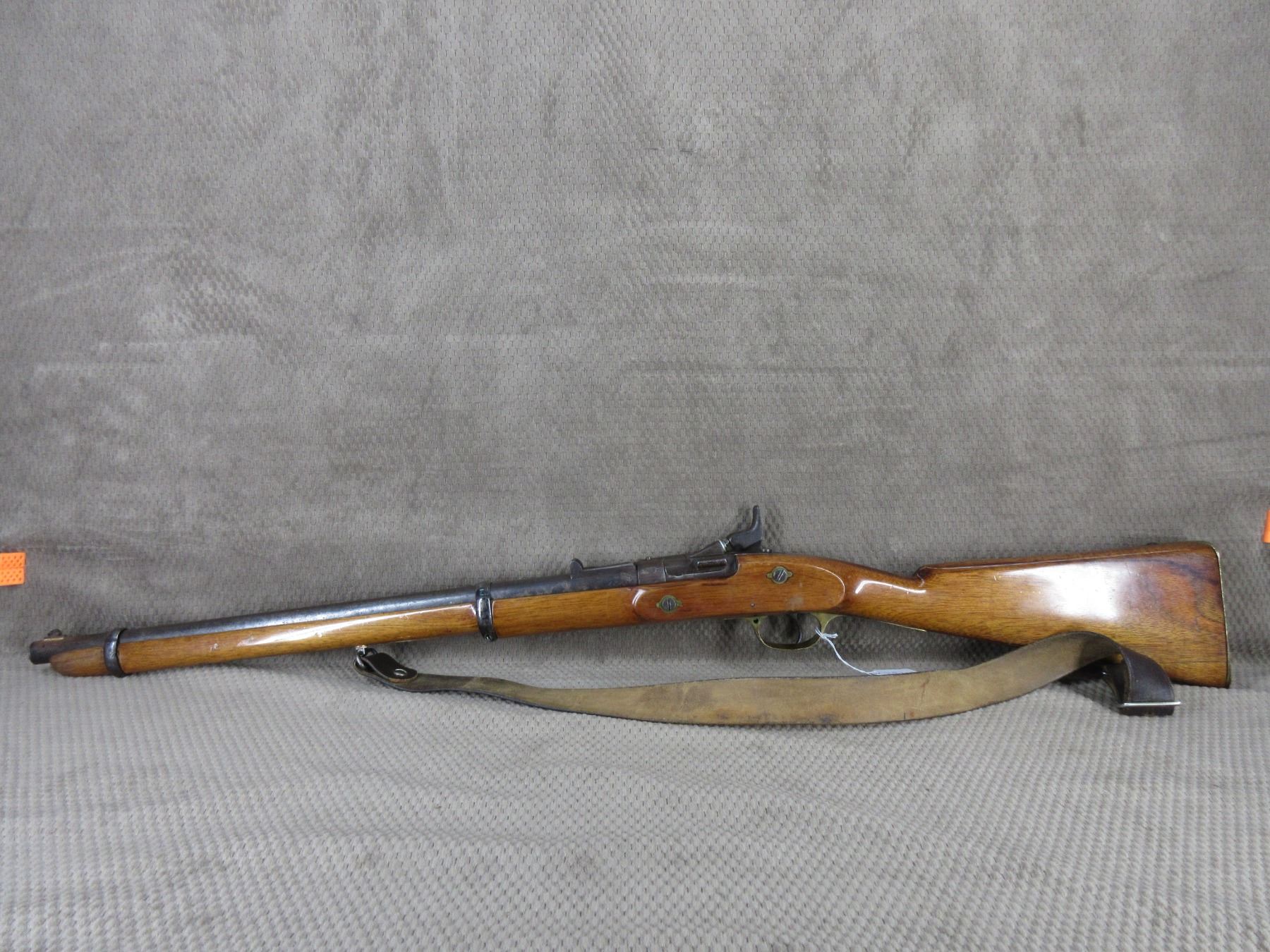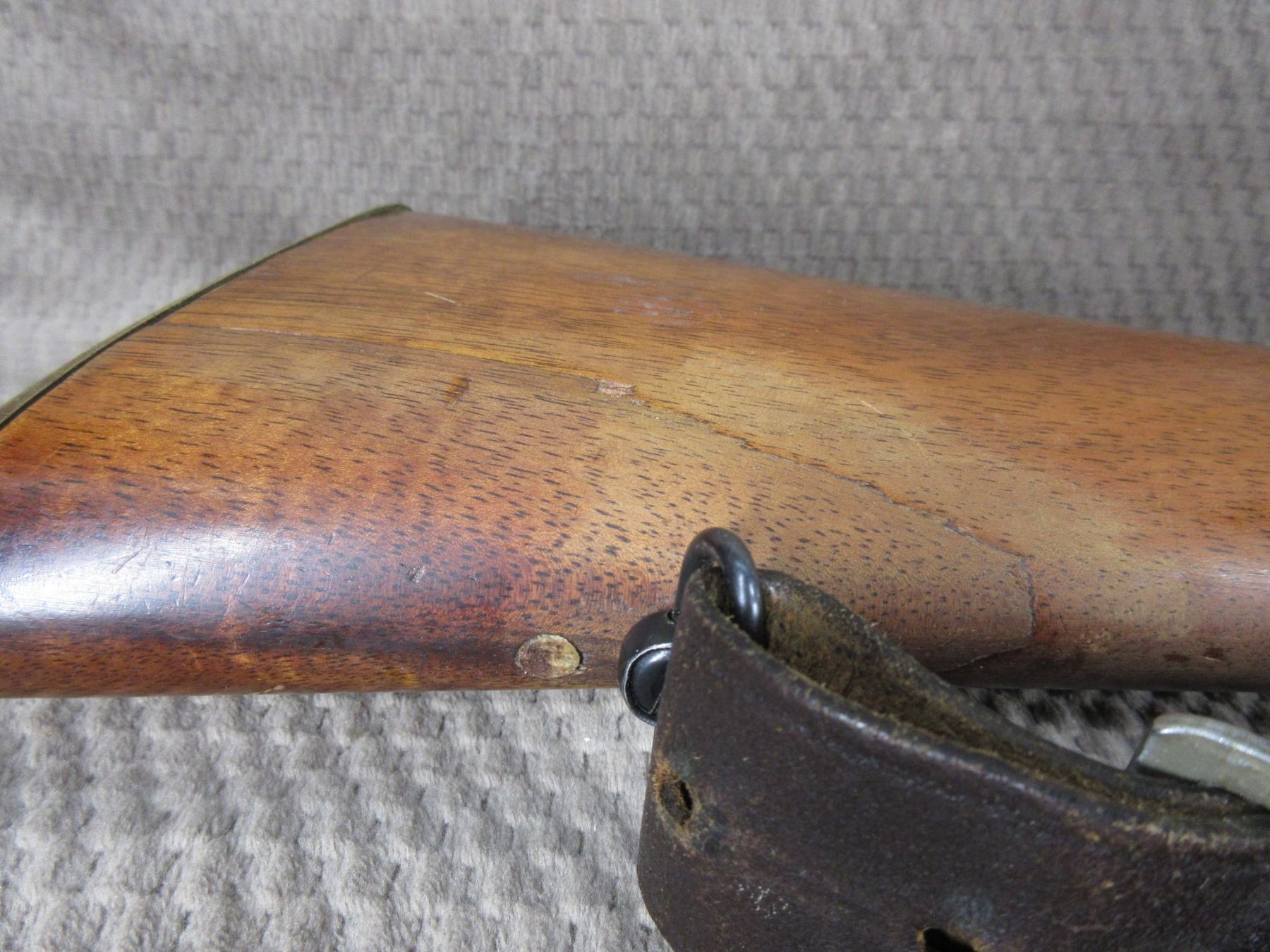 Antique - Snider Enfield 1864 Two Band Rifle in 577 Snider - This side-hinged breechblock rifle was appears to be in good working order. Barrel is 22 1/2", rifling is fair to good as it has black powder pitting, bluing is mostly grey with surface rust on front sight area, has both sights but reat sight has been modified, stock has repair on toe and cleaning rod groove has been filled with wood, brass butt plate.