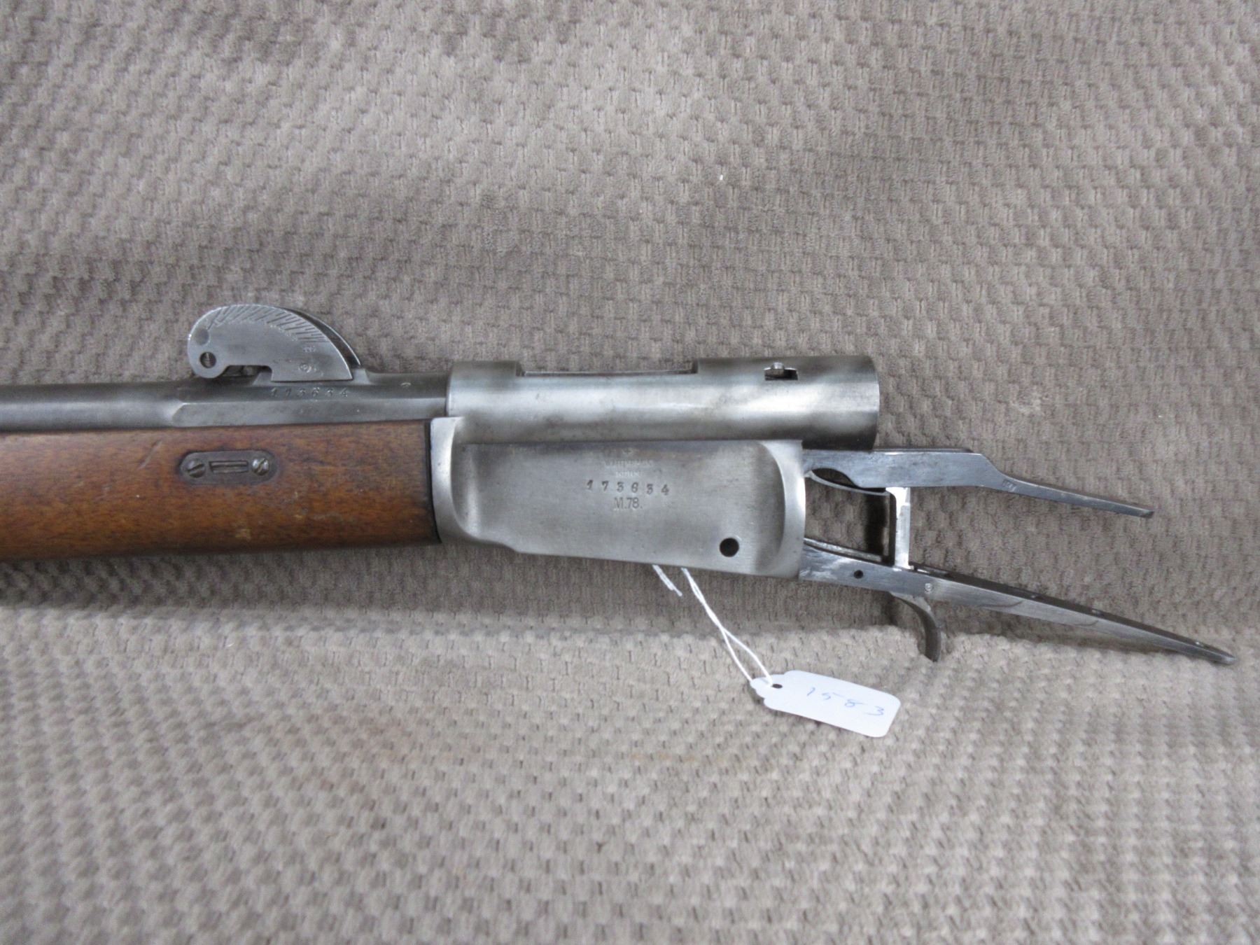 Antique - Swiss Vetterli Model 1878/81 in 41 Swiss Rimfire - This bolt action tube magazine rifle is being sold as a parts gun as many of the parts are missing. Barrel is 33", bluing is mostly gone, rifling is fair to good but has either leading or pitting, has front sight, missing rear sight, no stock but has forend portion that is good, Ser # 173634