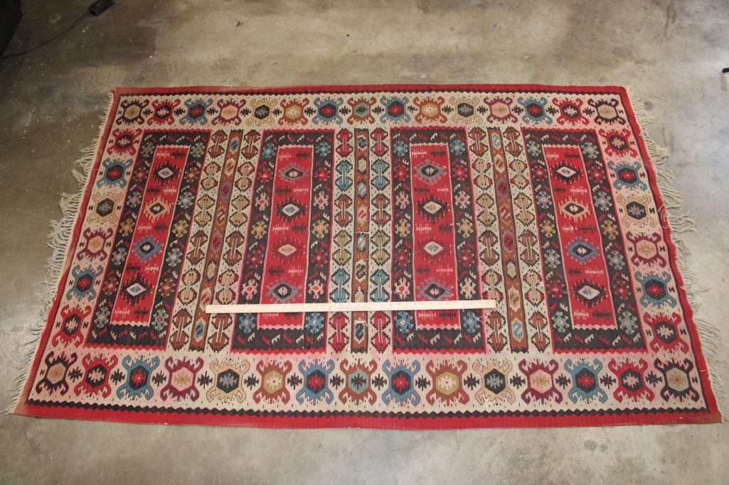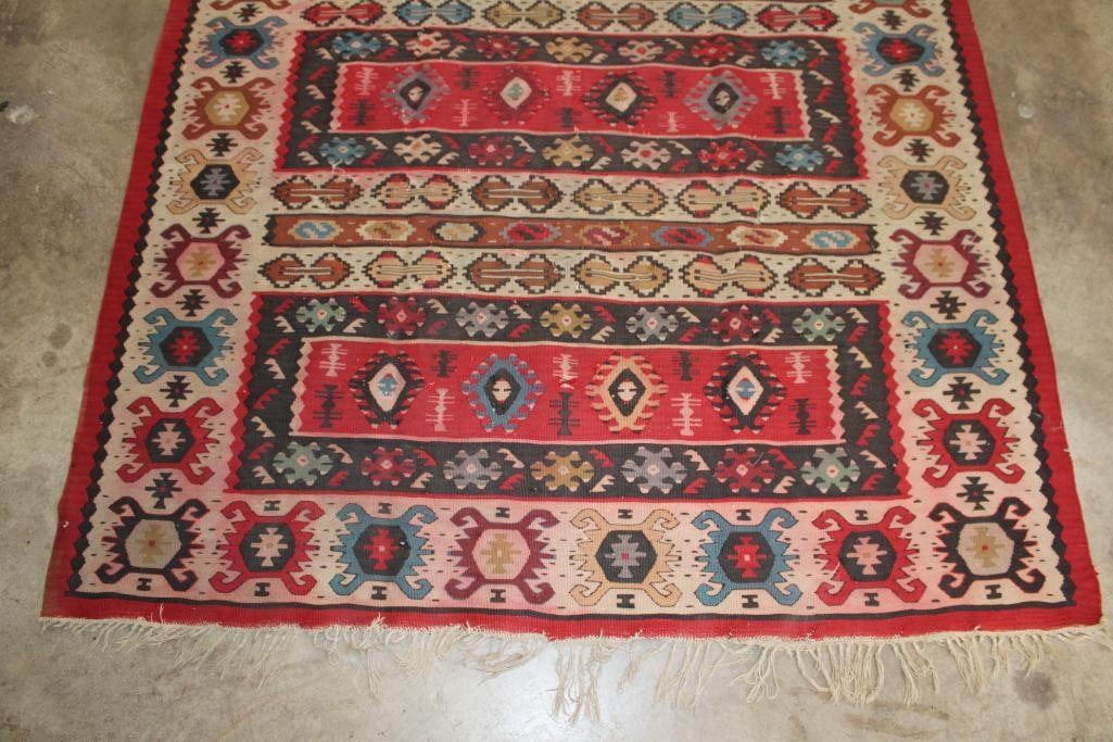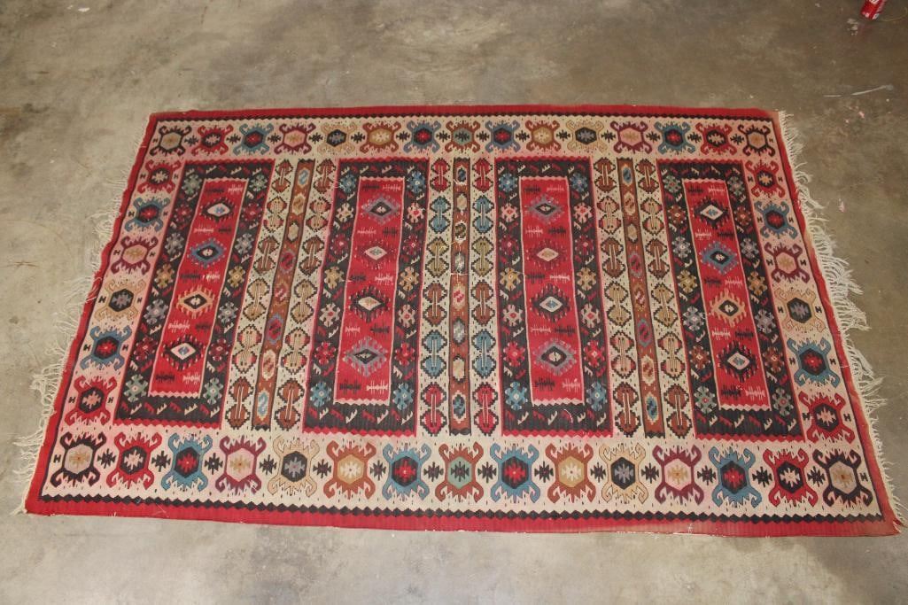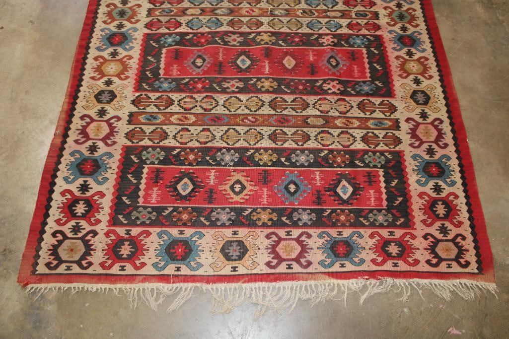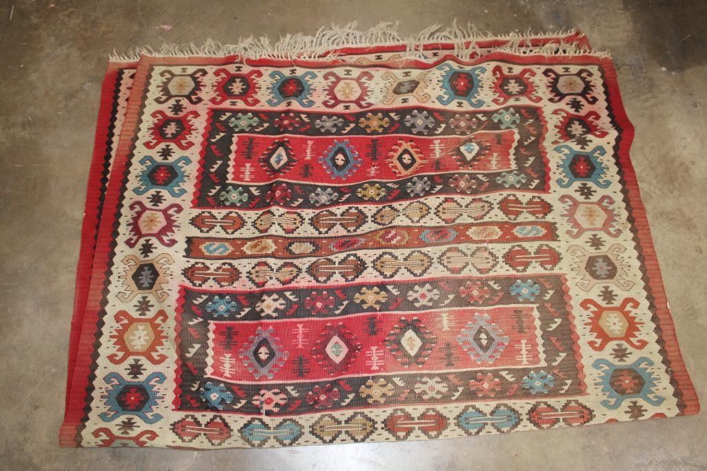 Antique Turkish Kilim Hand-woven Wool Rug. It measures 84" Long x 54" Wide and it appears to be very old. COLLECTIBLE TEXTILES AND RUGS