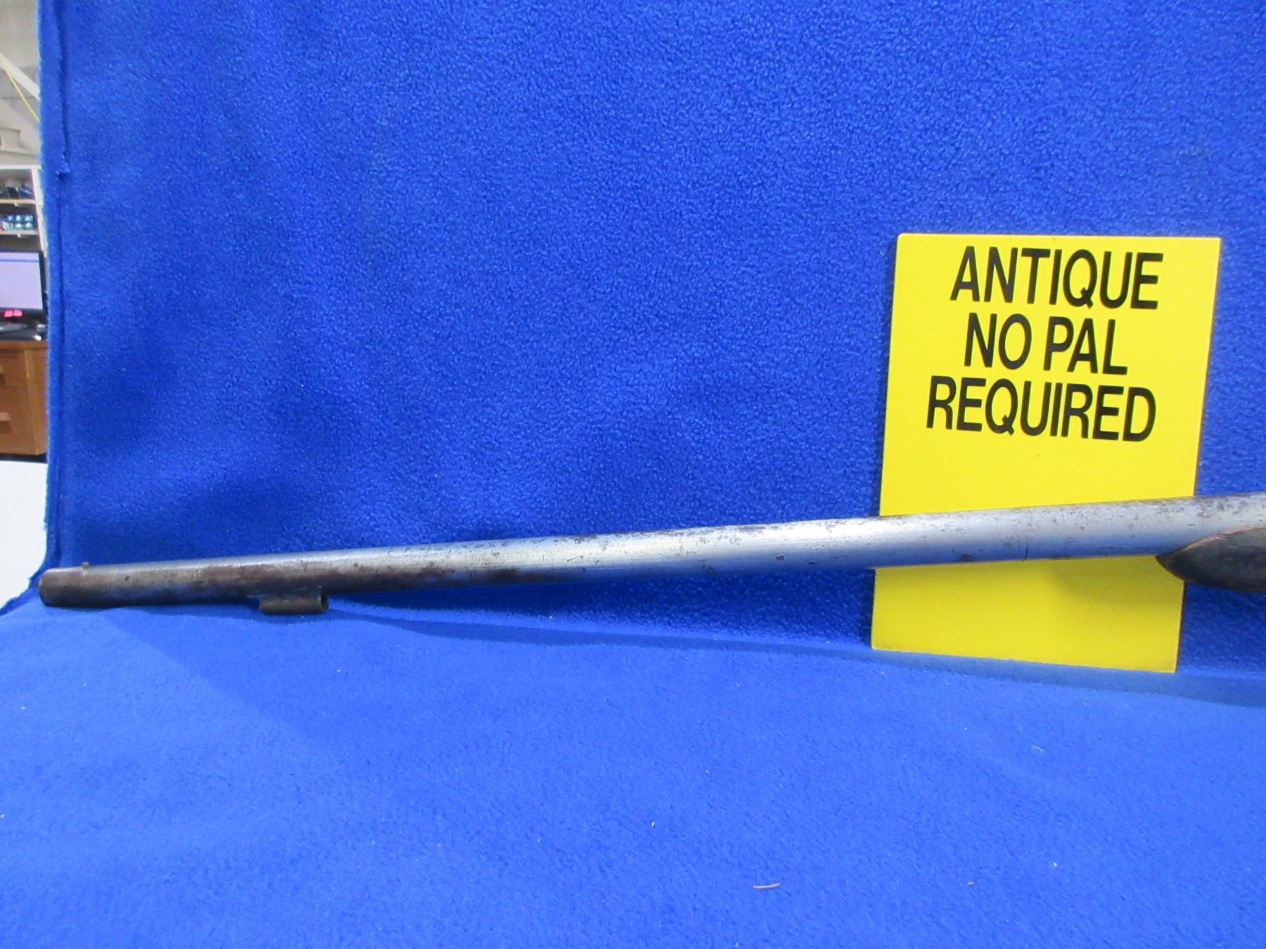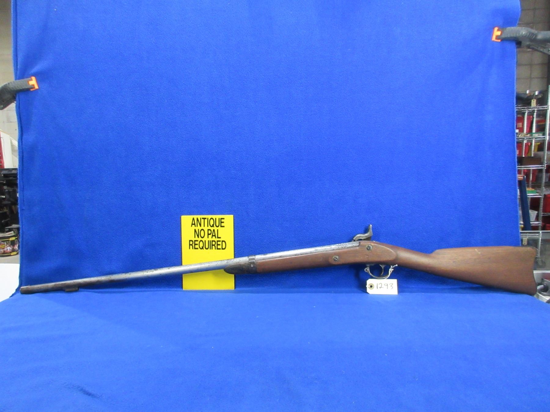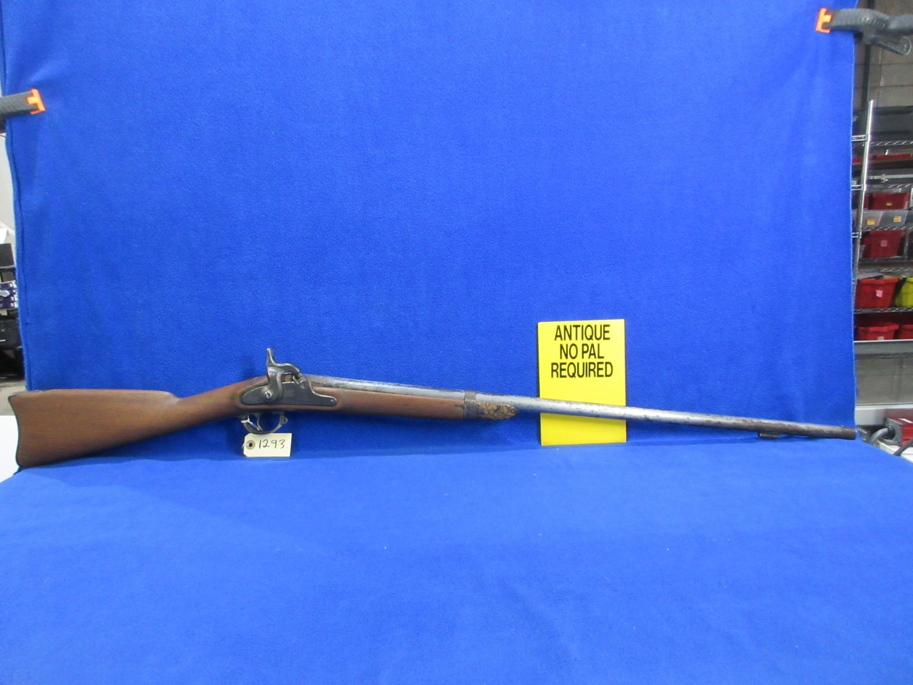Antique - No PAL Required - US Springfield 1862 Cap & Ball Muzzleloader, appears to be a shotgun, barrel mics out at 62 cal. - This is a cap and ball muzzleloading shotgun, action appears to be in good working order. Barrel is 32" and barrel tang appears incorrect, smooth bore is very dirty, bluing is gone, has front bead sight, stock has a crack repair under the hammer and forearm has been poorly sporterized, length of pull is 13 1/2", metal butt plate good. Ser # None