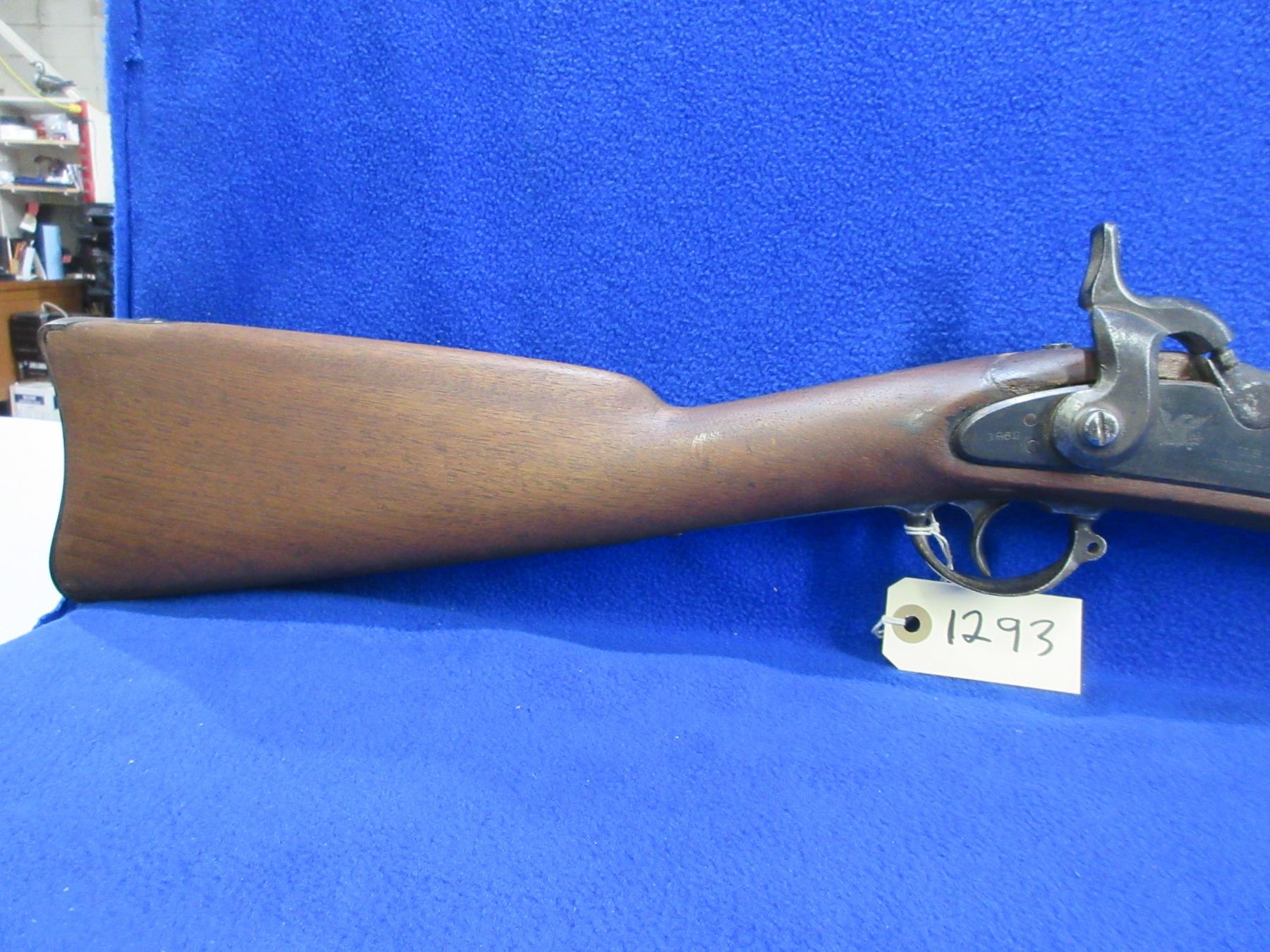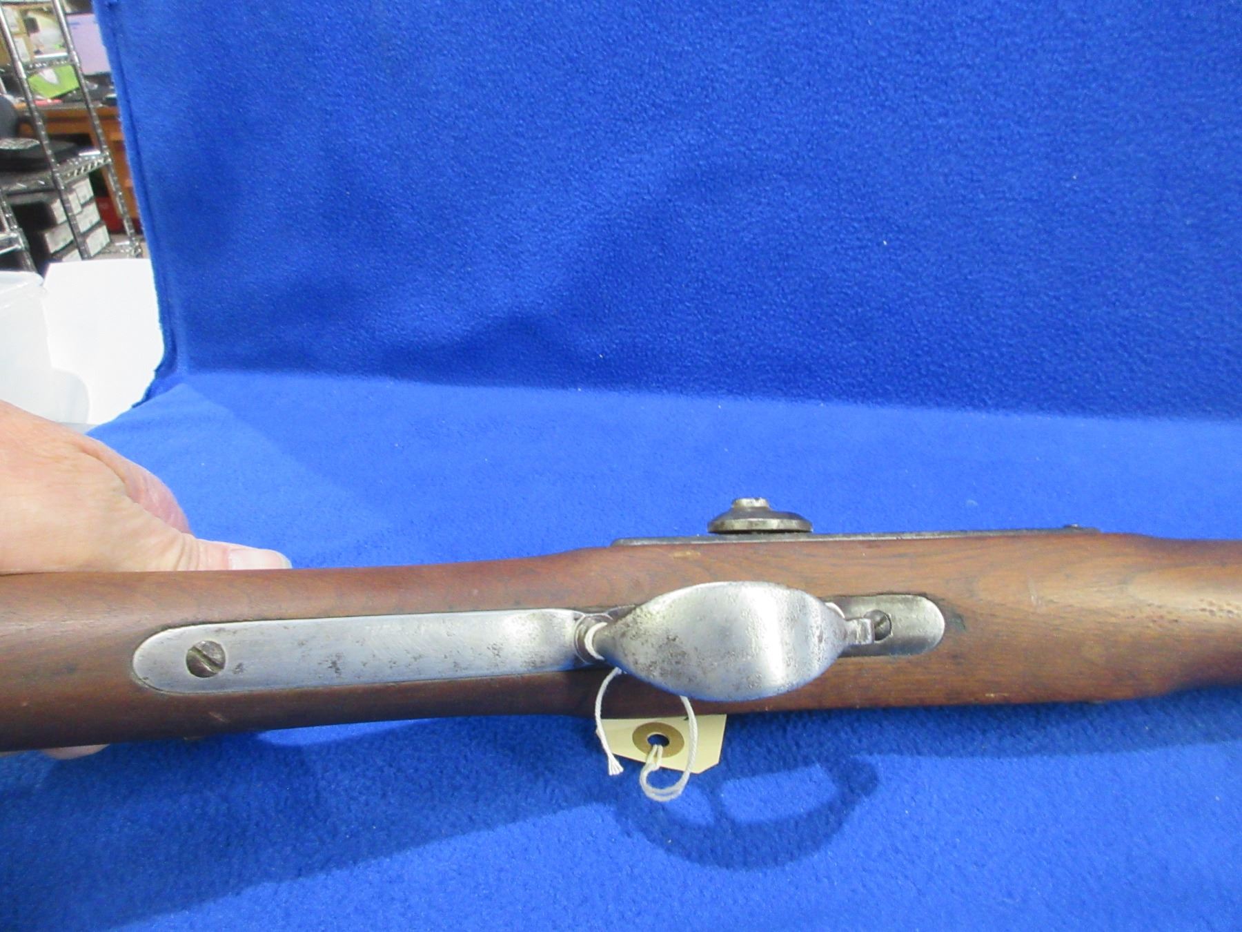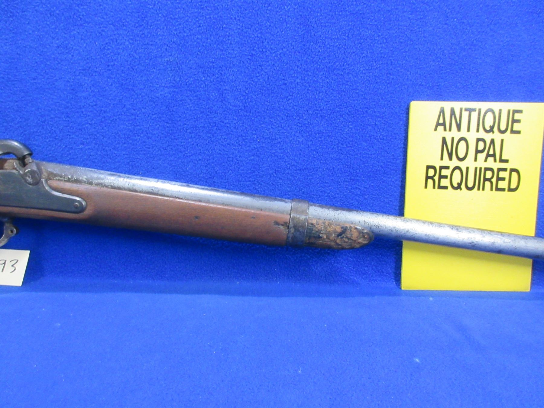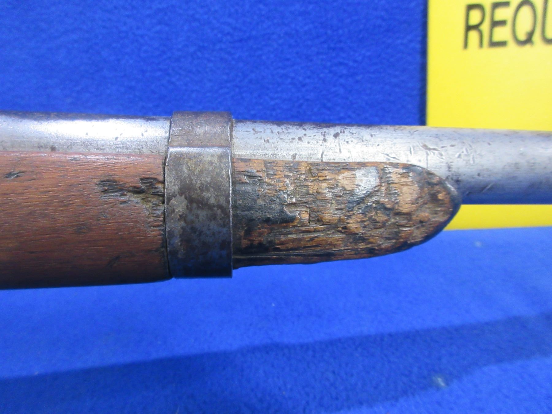 Antique - No PAL Required - US Springfield 1862 Cap & Ball Muzzleloader, appears to be a shotgun, barrel mics out at 62 cal. - This is a cap and ball muzzleloading shotgun, action appears to be in good working order. Barrel is 32" and barrel tang appears incorrect, smooth bore is very dirty, bluing is gone, has front bead sight, stock has a crack repair under the hammer and forearm has been poorly sporterized, length of pull is 13 1/2", metal butt plate good. Ser # None
